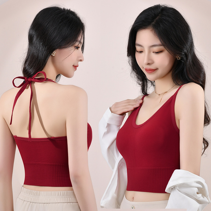 辣妹设计感系带挂脖两穿吊带美背背心短款内搭裹胸带胸垫女士内衣