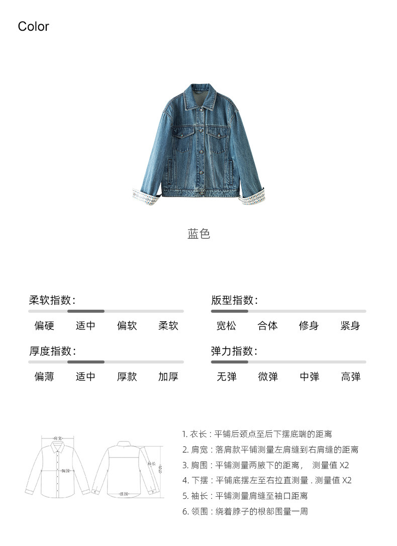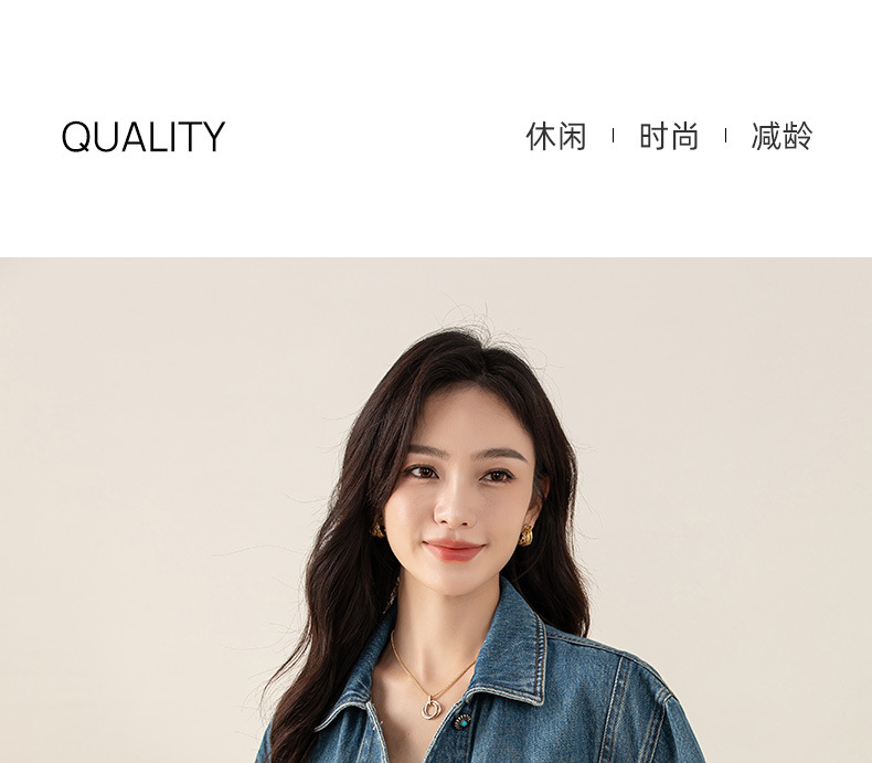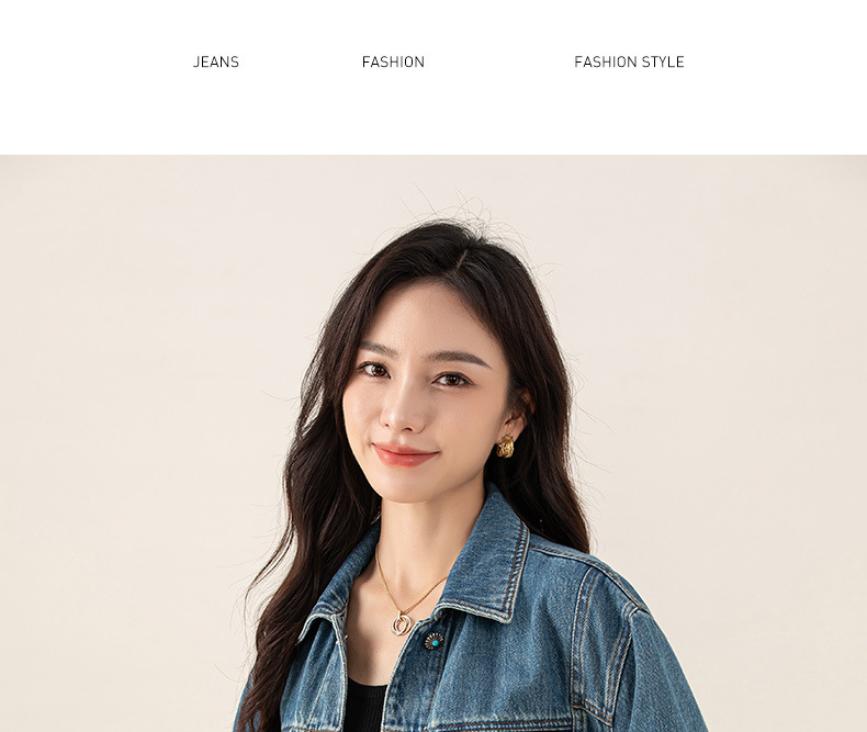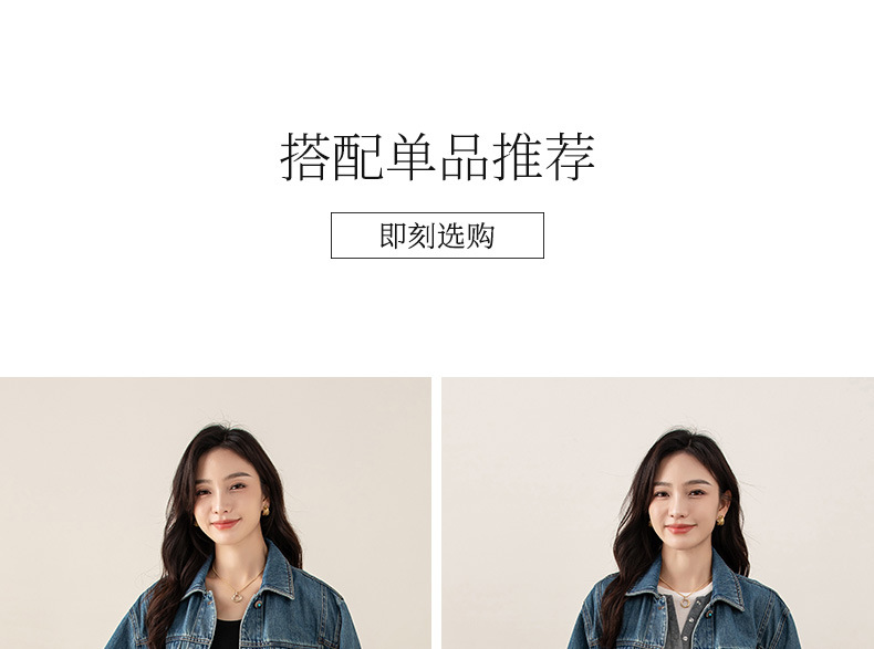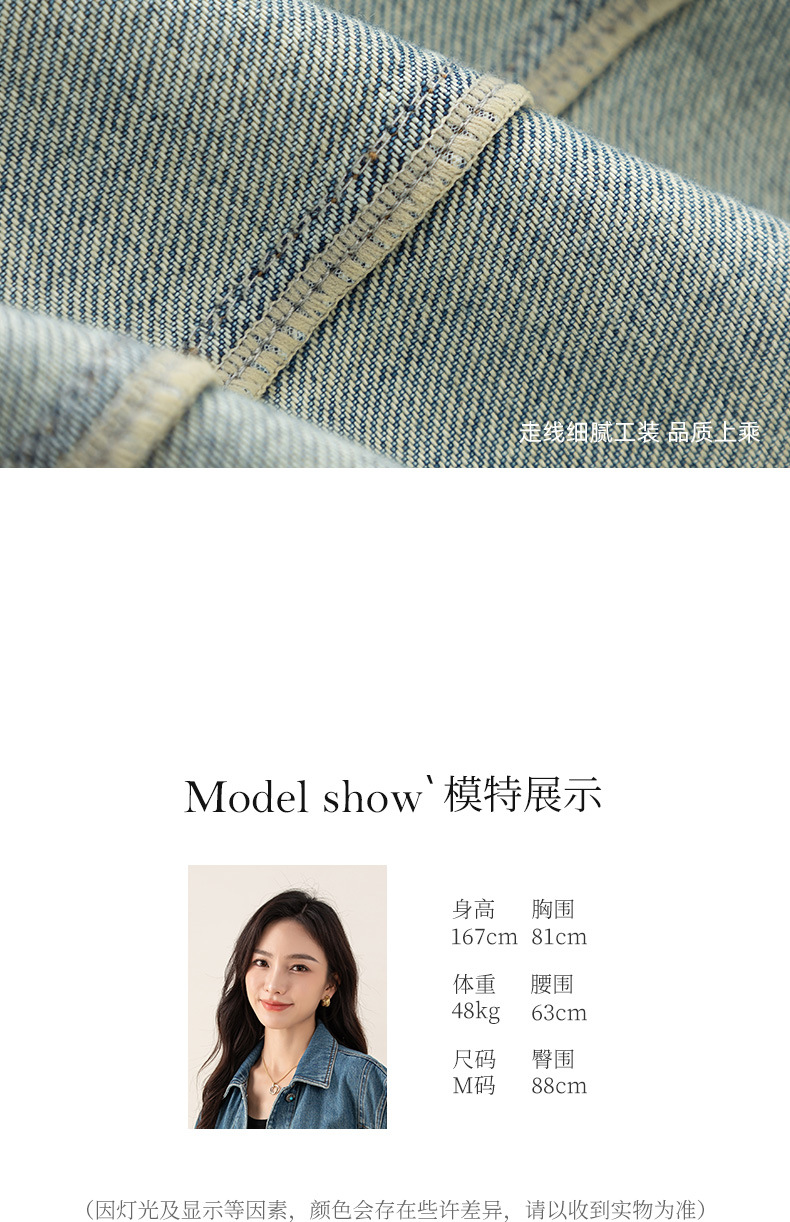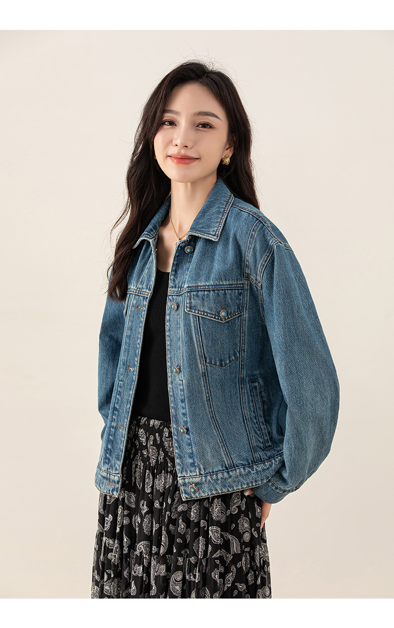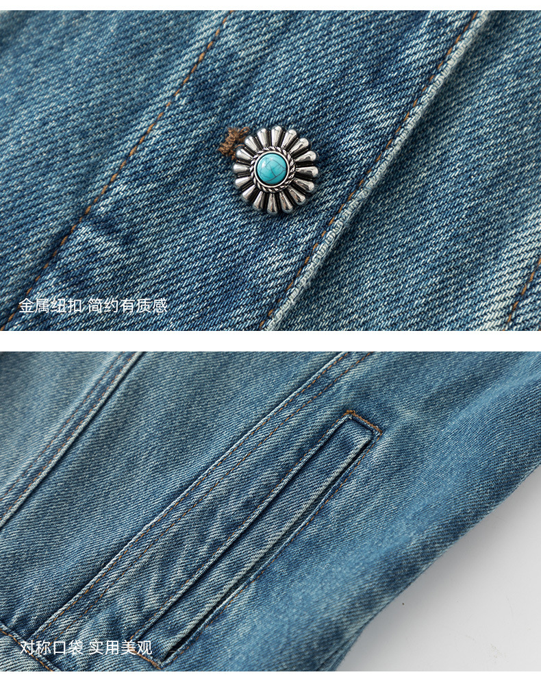 秋季复古水洗牛仔外套女设计感拼接蓝色印花翻边袖口新款上衣