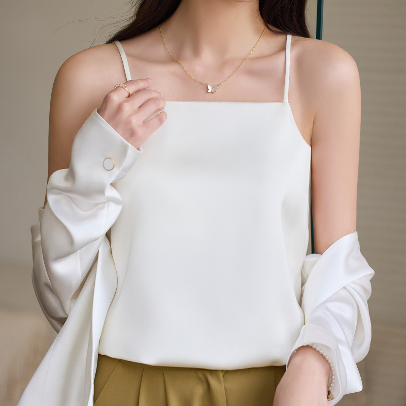 吊带背心女内搭西装西服新款宽松白色打底缎面仿真丝上衣夏天外穿