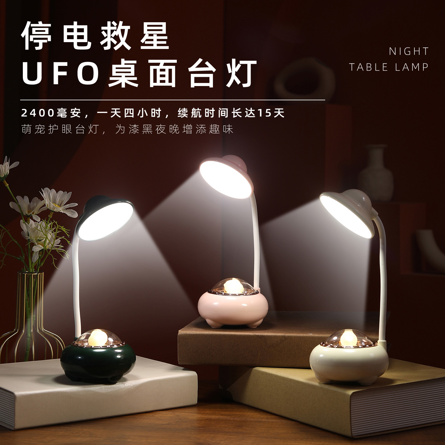 新款学习书桌小夜灯UFO桌面台灯usb充电长续航夜灯台灯两用床头灯