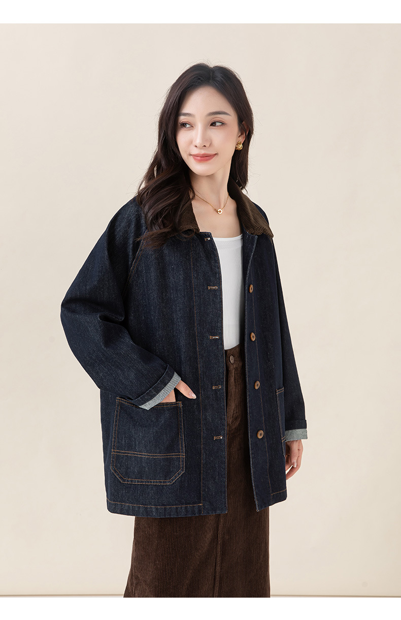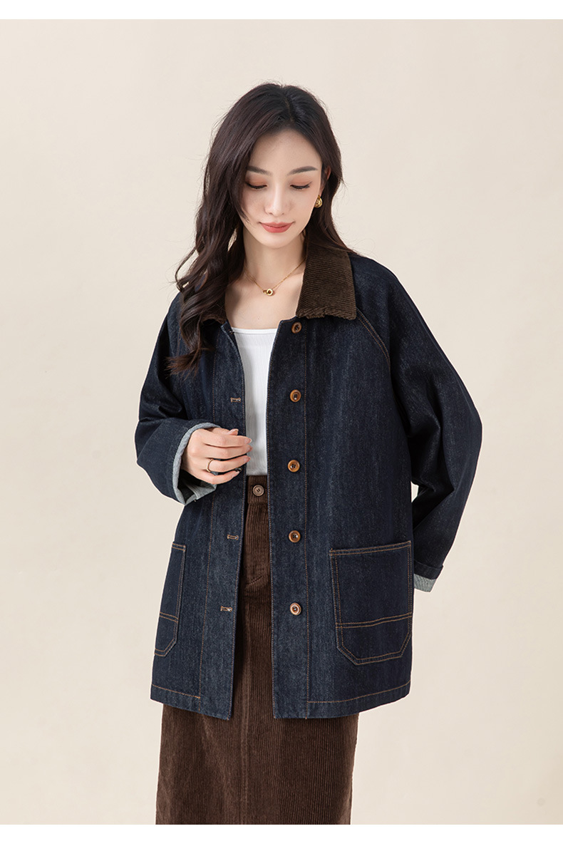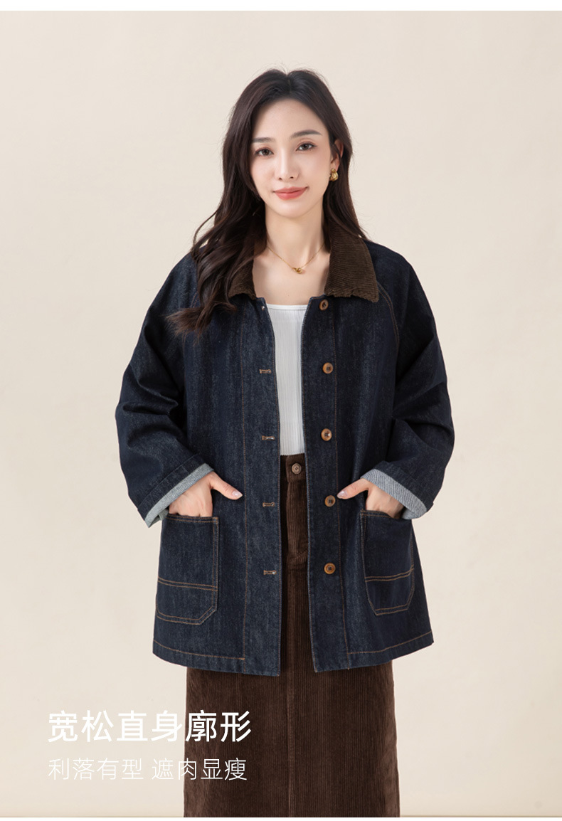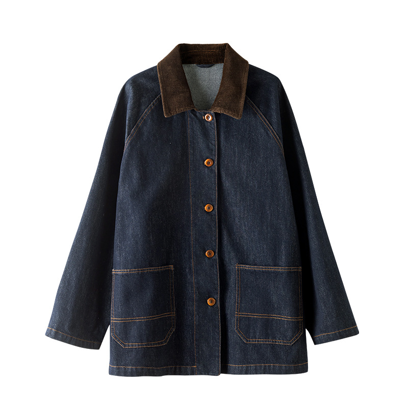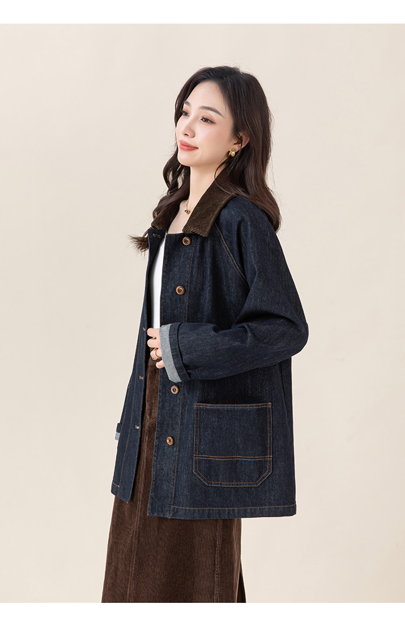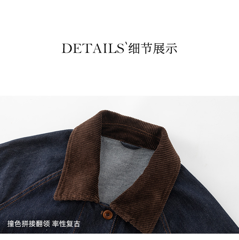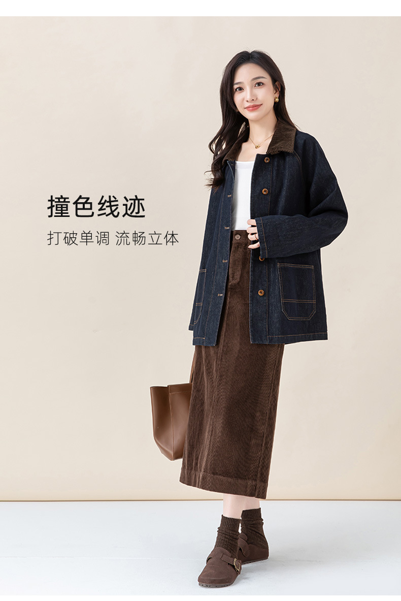 复古撞色土壤牛仔外套2025秋季新款灯芯绒翻领棉弹中长款夹克