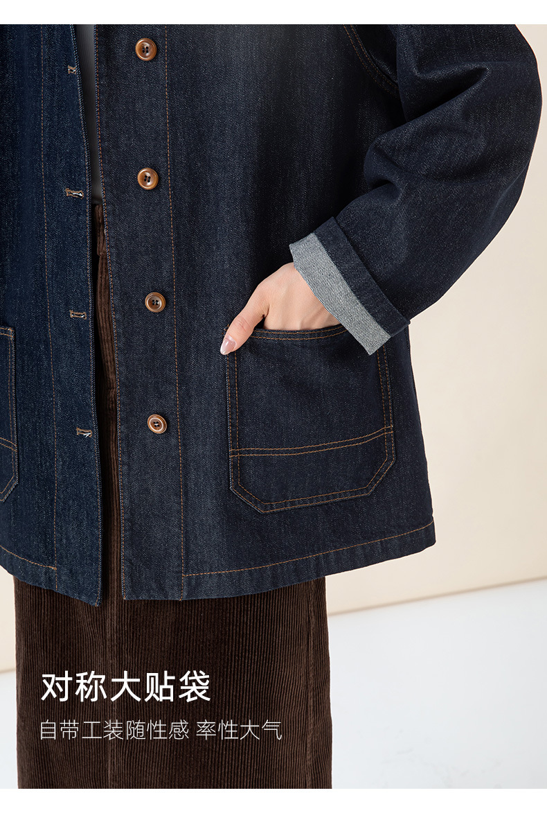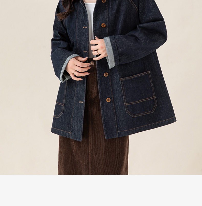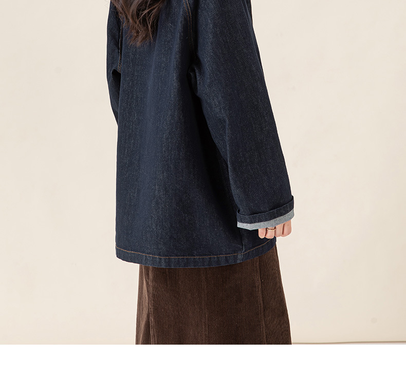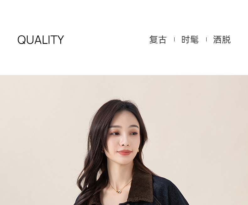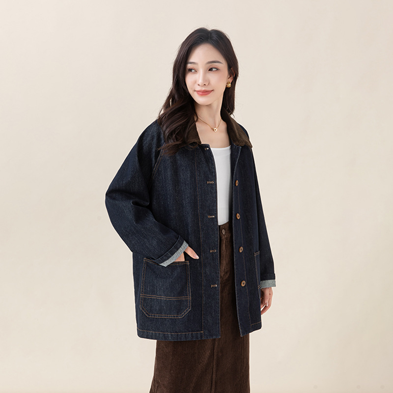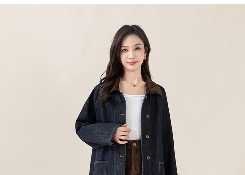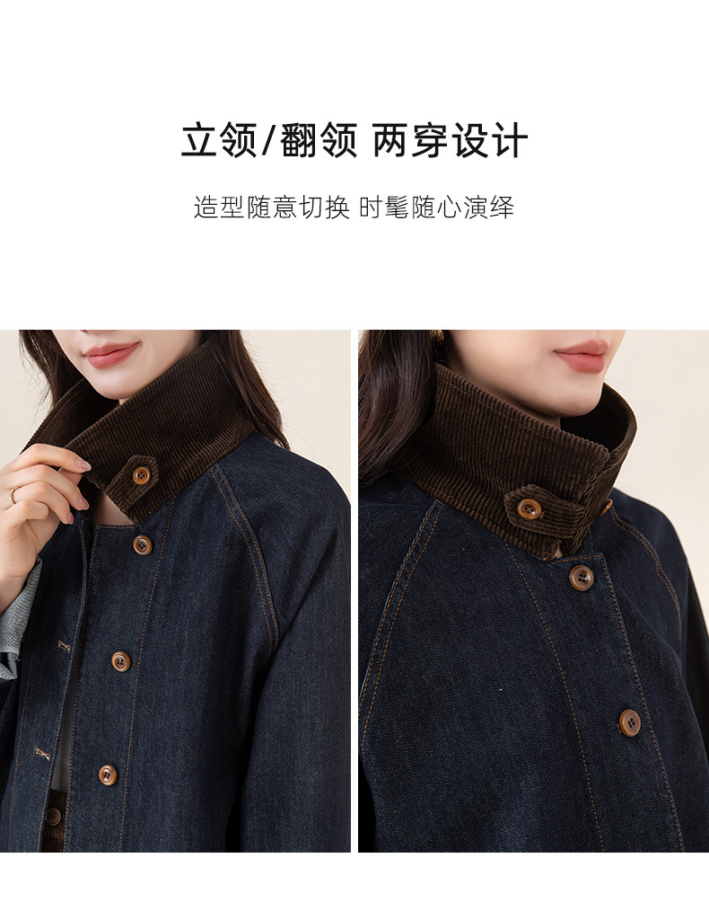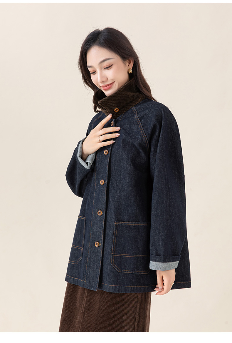 复古撞色土壤牛仔外套2025秋季新款灯芯绒翻领棉弹中长款夹克