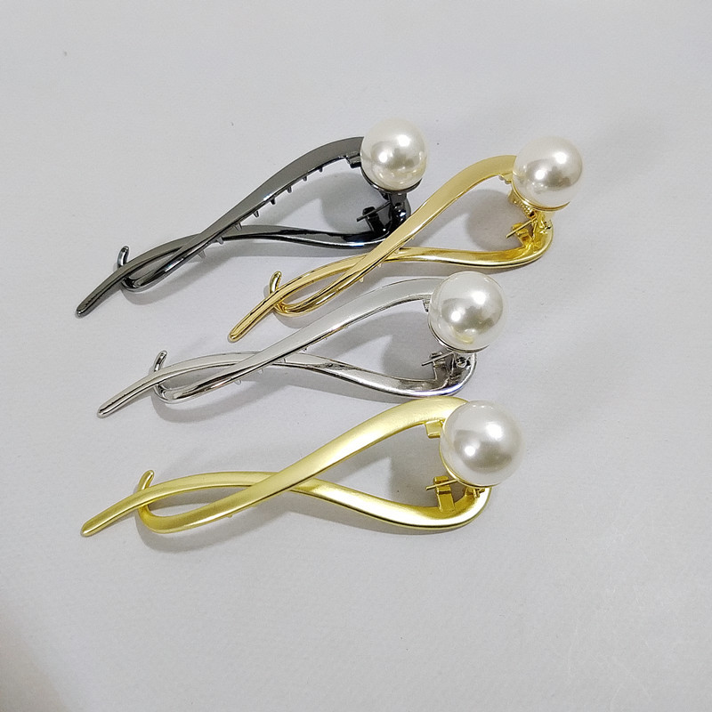 高级感珍珠后脑勺夹子头饰青蛙扣发夹女夏季鸭嘴夹盘发夹一字抓夹
