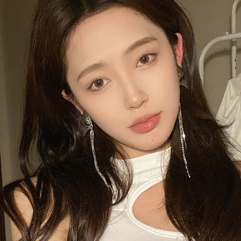 蝴蝶翅膀流苏耳钉耳环新款潮气质高级感小众耳饰长款显脸瘦