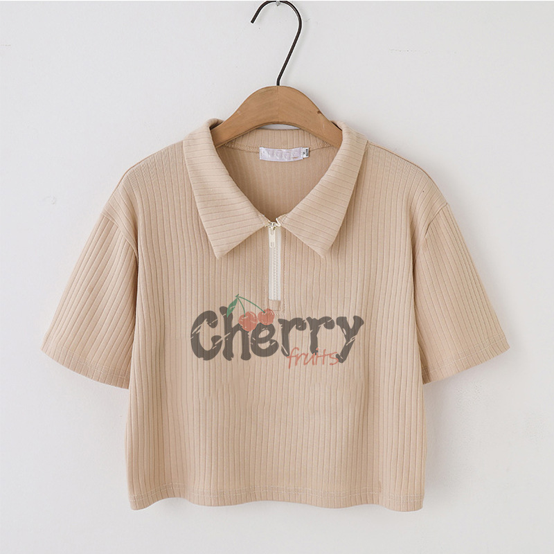 正肩短袖t恤女夏季新款甜辣妹显瘦设计感小众短款polo衫上衣