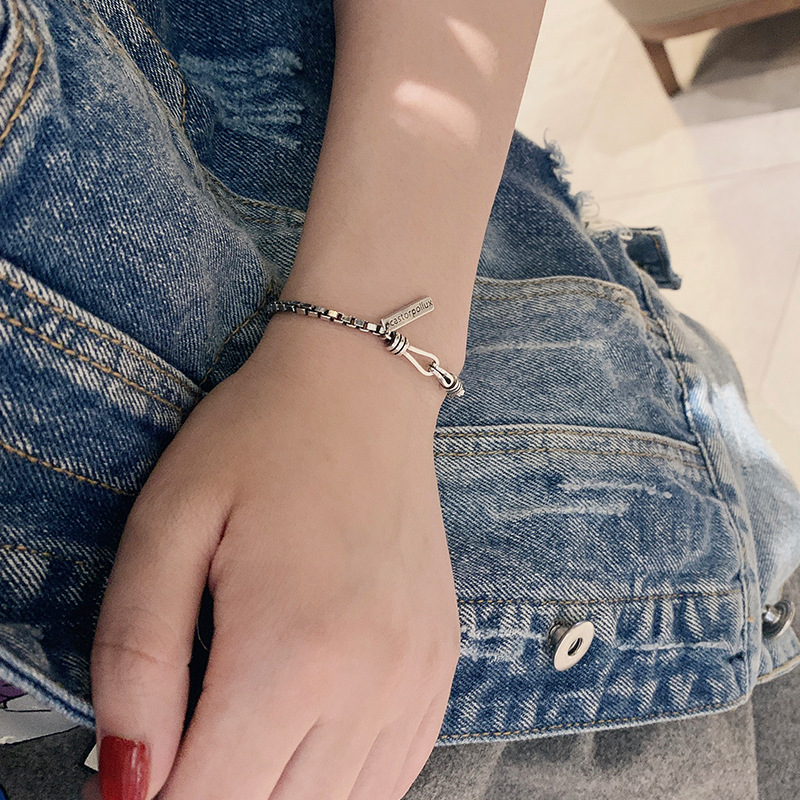 ins冷淡风小众设计复古做旧字母手链女 韩版简约个性网红潮人手环
