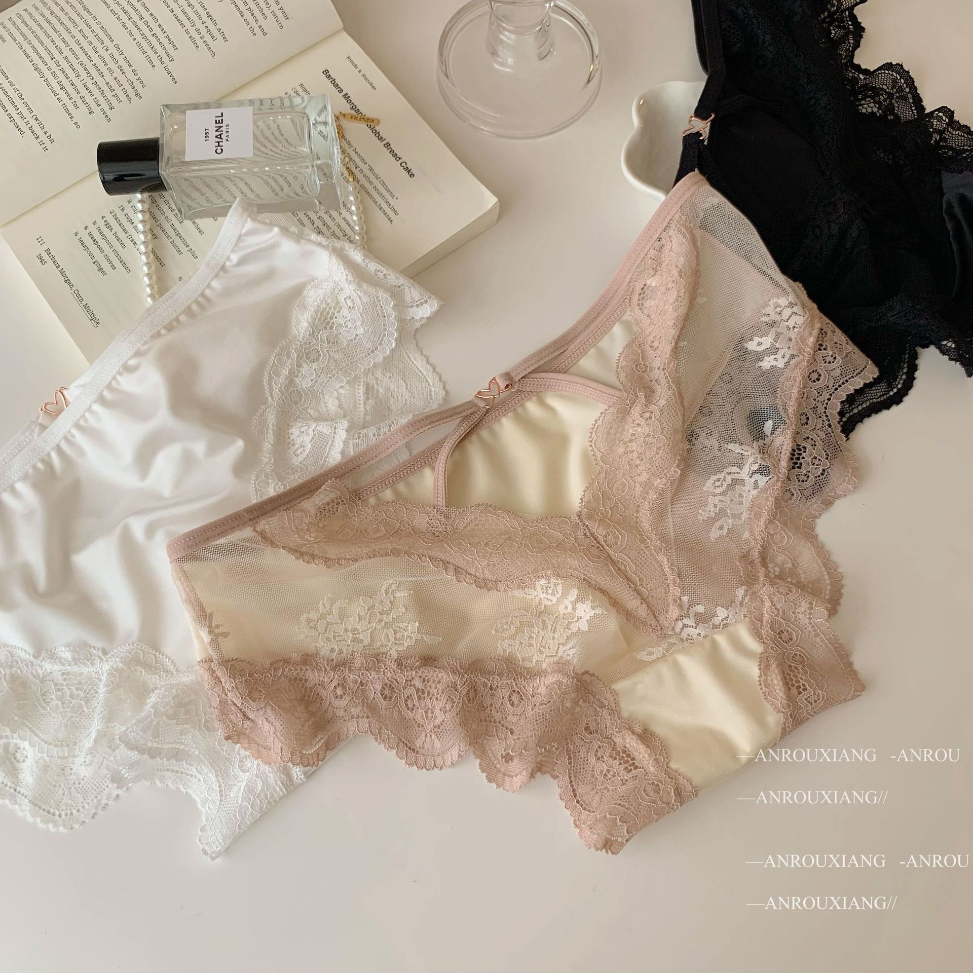 甜欲小蜜桃~法式性感缎面蕾丝内裤女纯欲镂空透气纯棉裆三角内裤