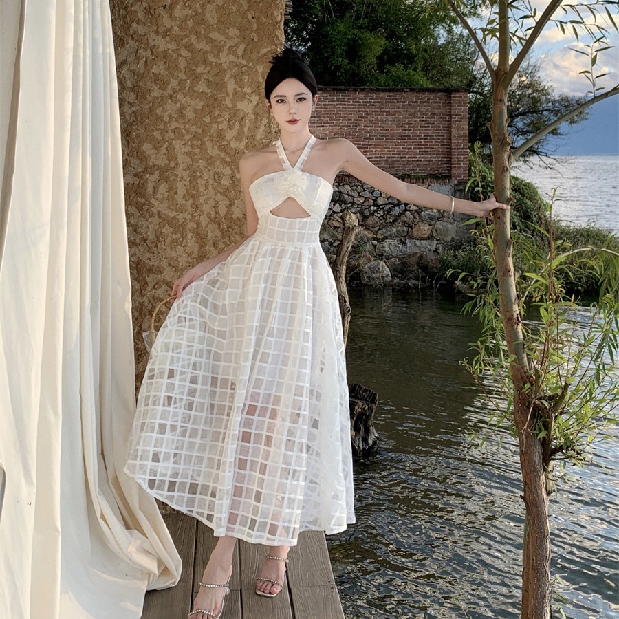 新款高级感吊带裹胸花朵性感时尚气质连衣裙仙女裙沙滩度假裙