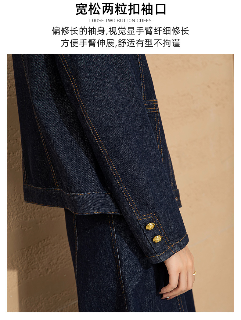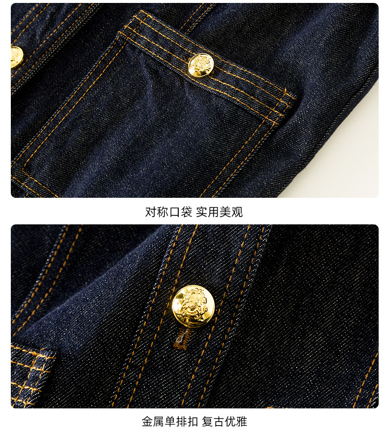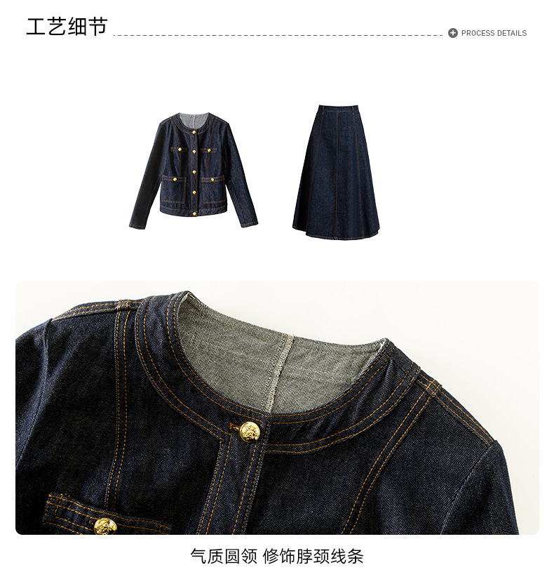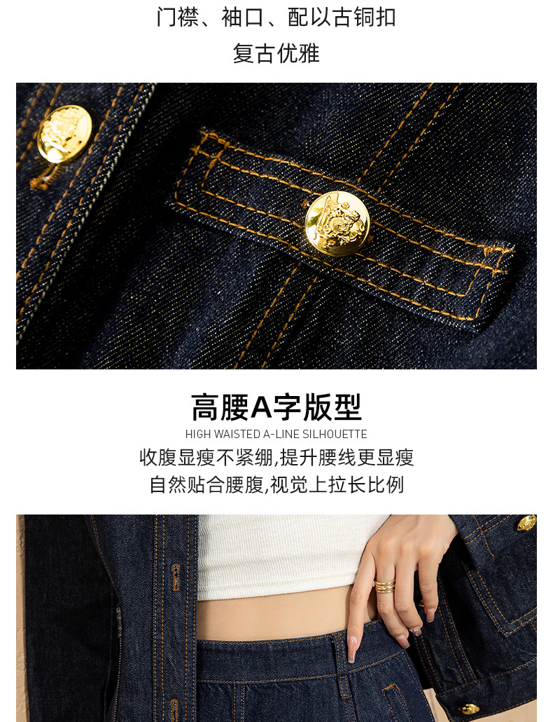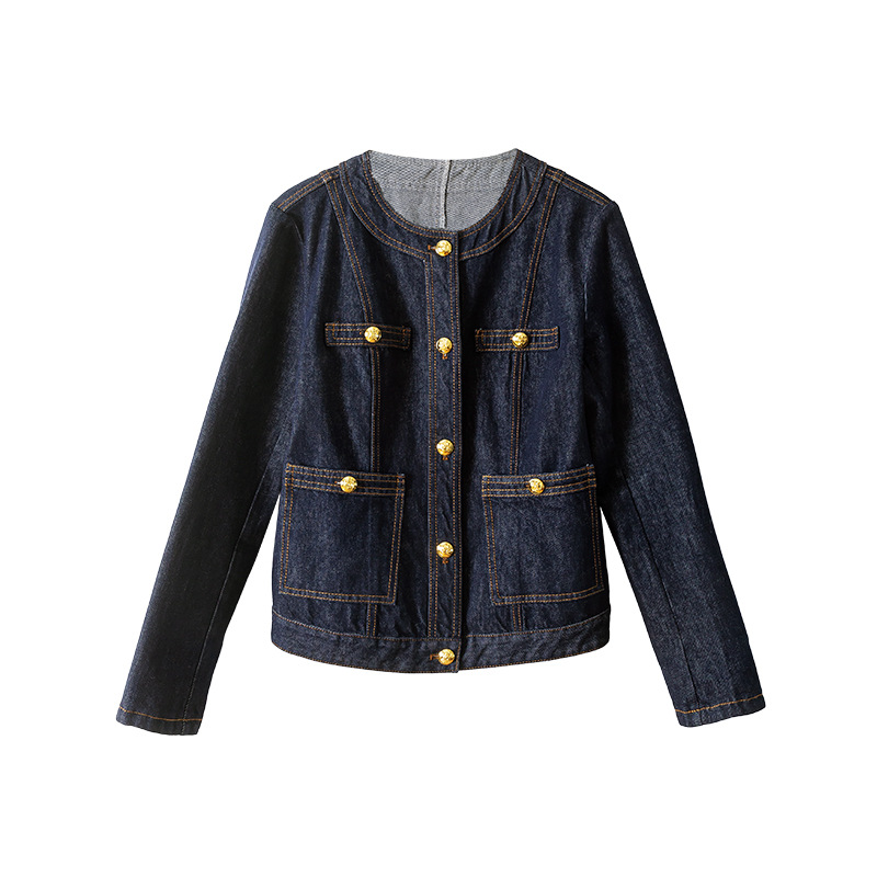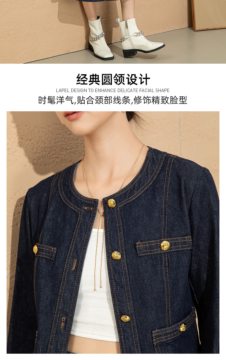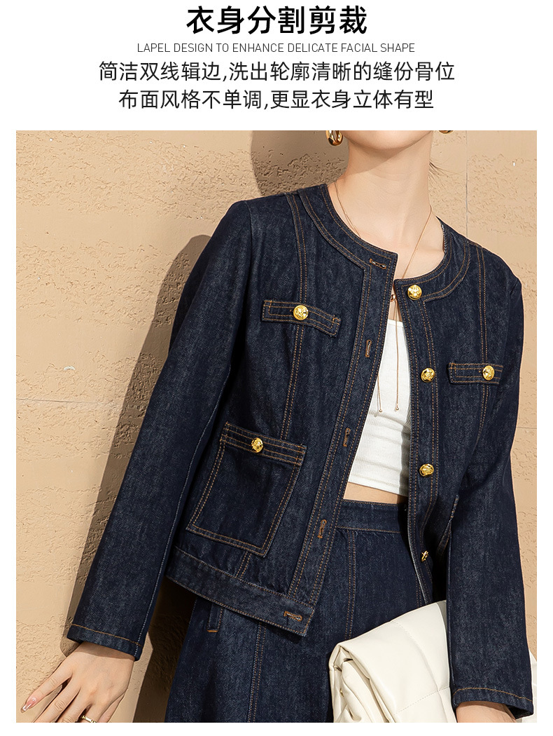 小香风撞色明线浮雕金扣早春新款弹力牛仔短外套女