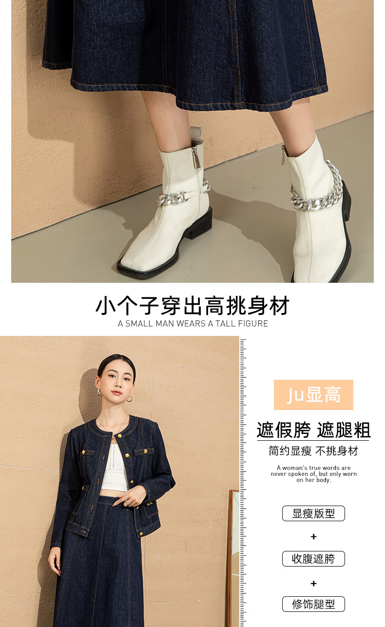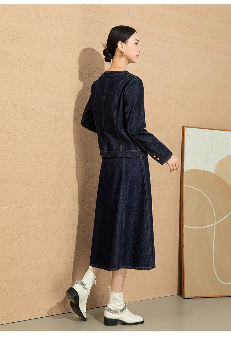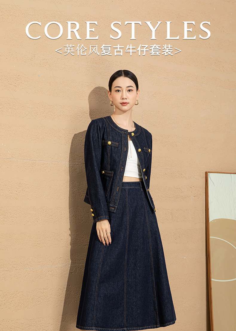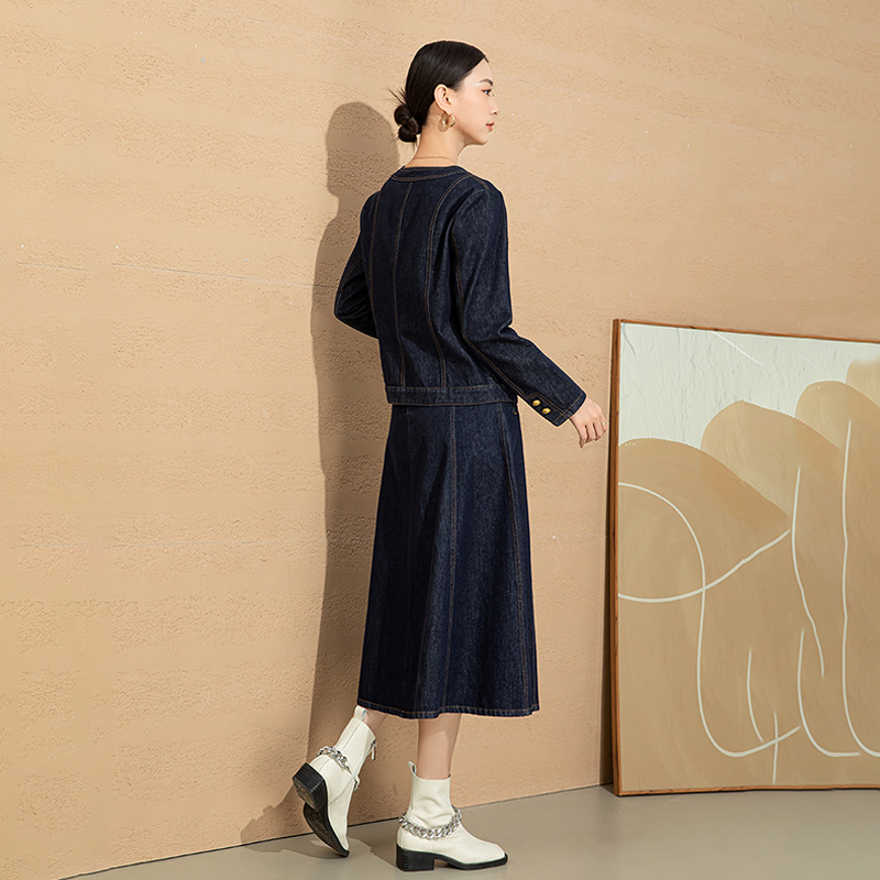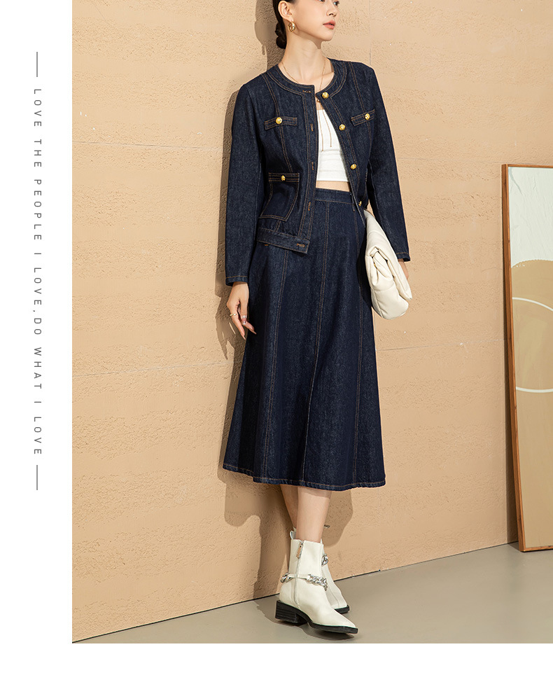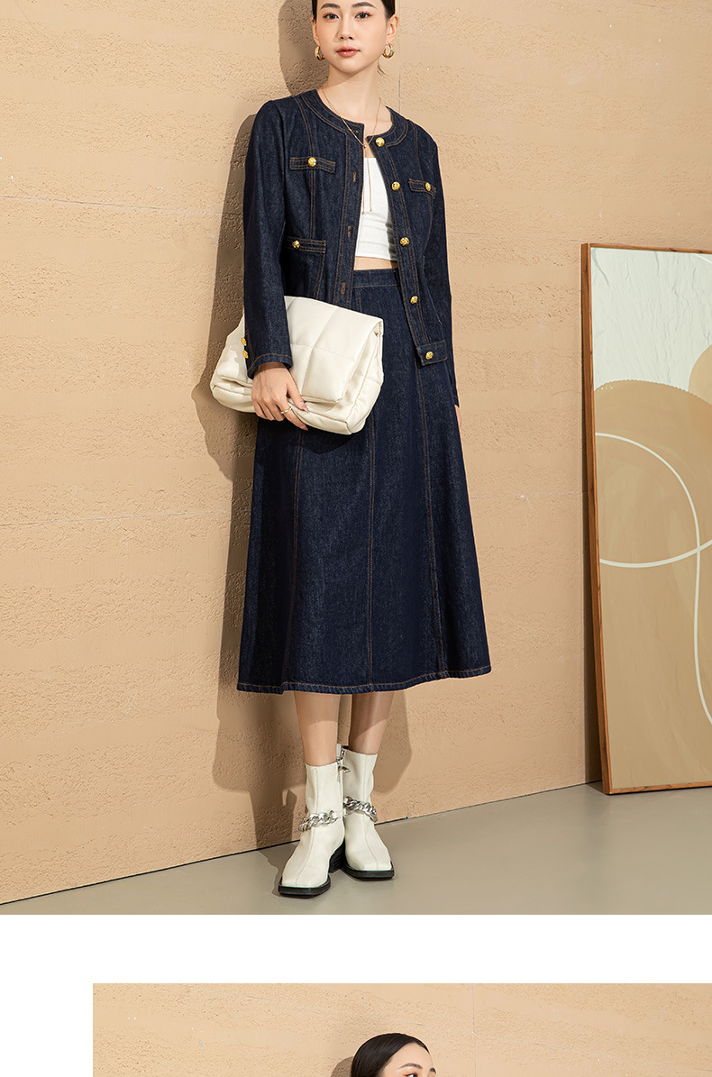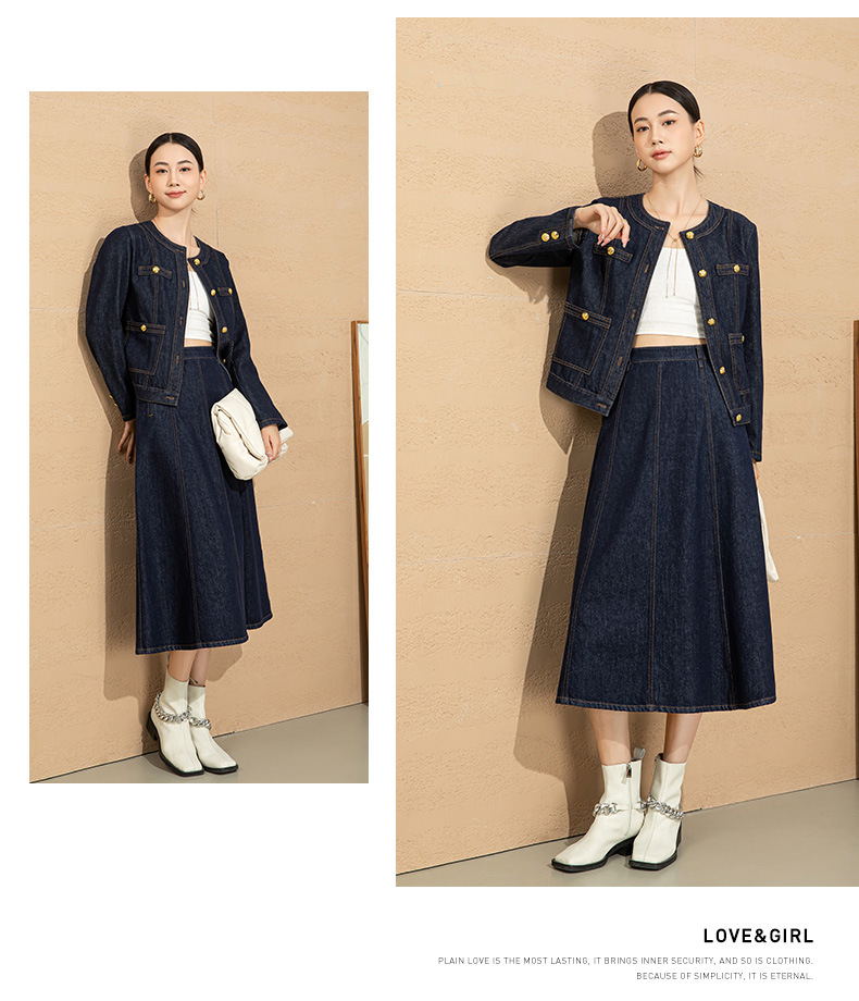 小香风撞色明线浮雕金扣早春新款弹力牛仔短外套女