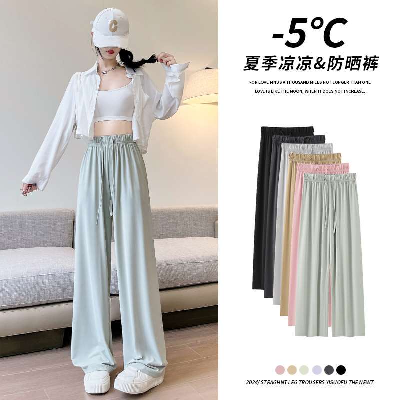 冰丝阔腿裤夏女垂感新款高腰宽松垂感直筒裤显瘦女装凉凉防晒裤
