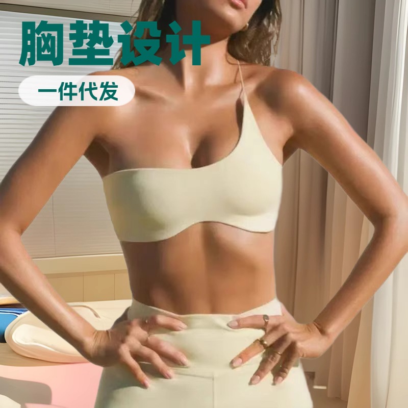 欧美时尚夏季弧形瑜伽服上衣 女 修身运动跑步带胸垫文胸