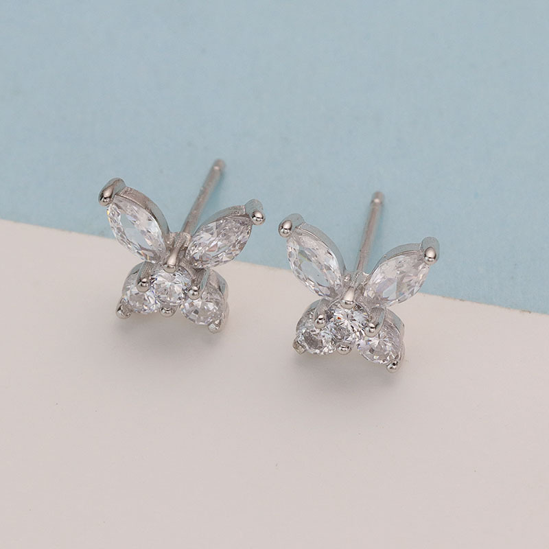 s925纯银森系蝴蝶锆石耳钉韩版轻奢气质镶钻养耳洞高级感ins耳饰