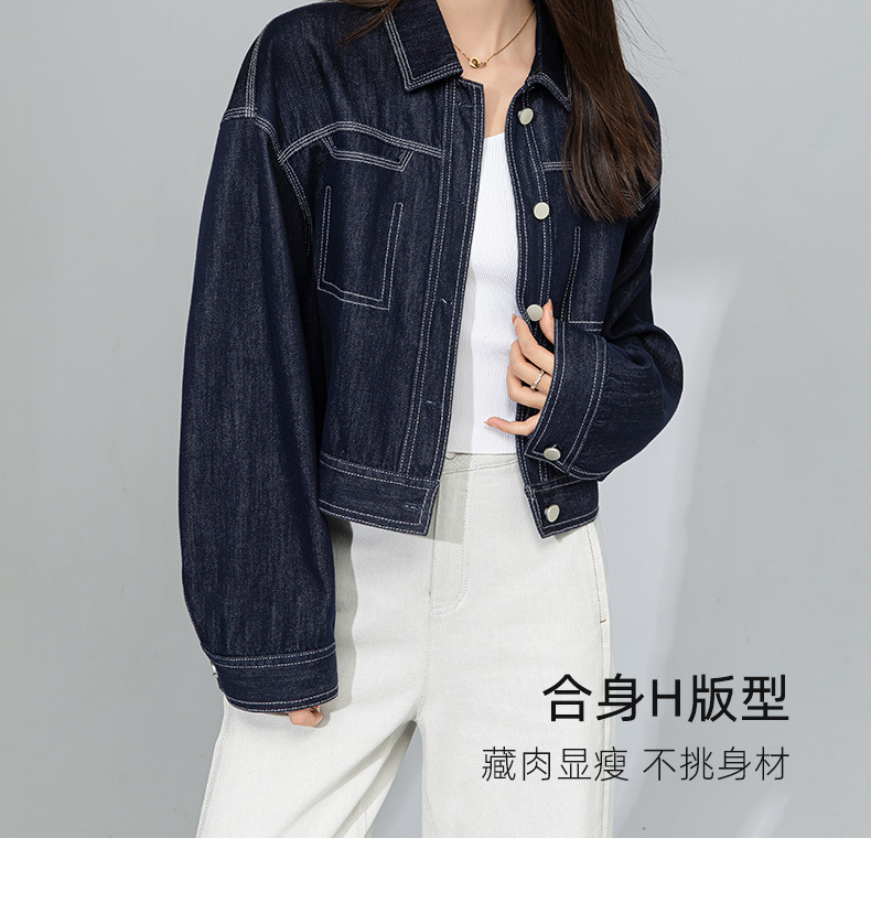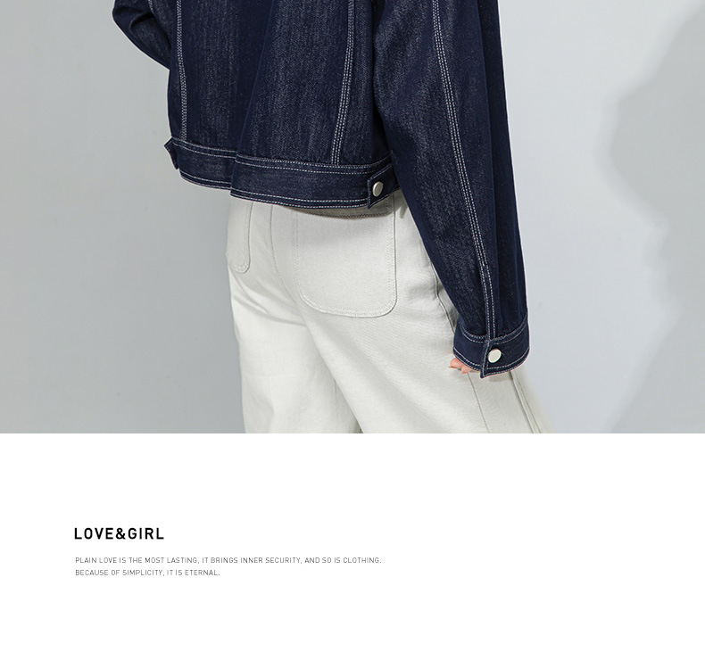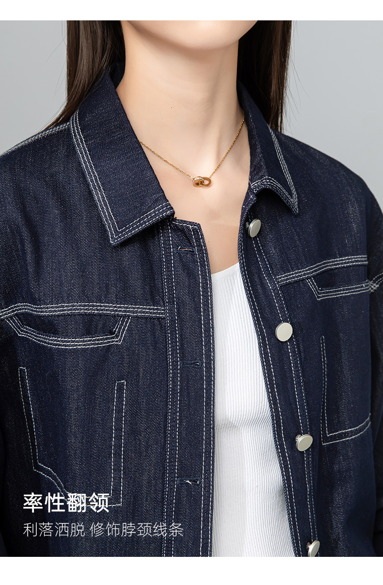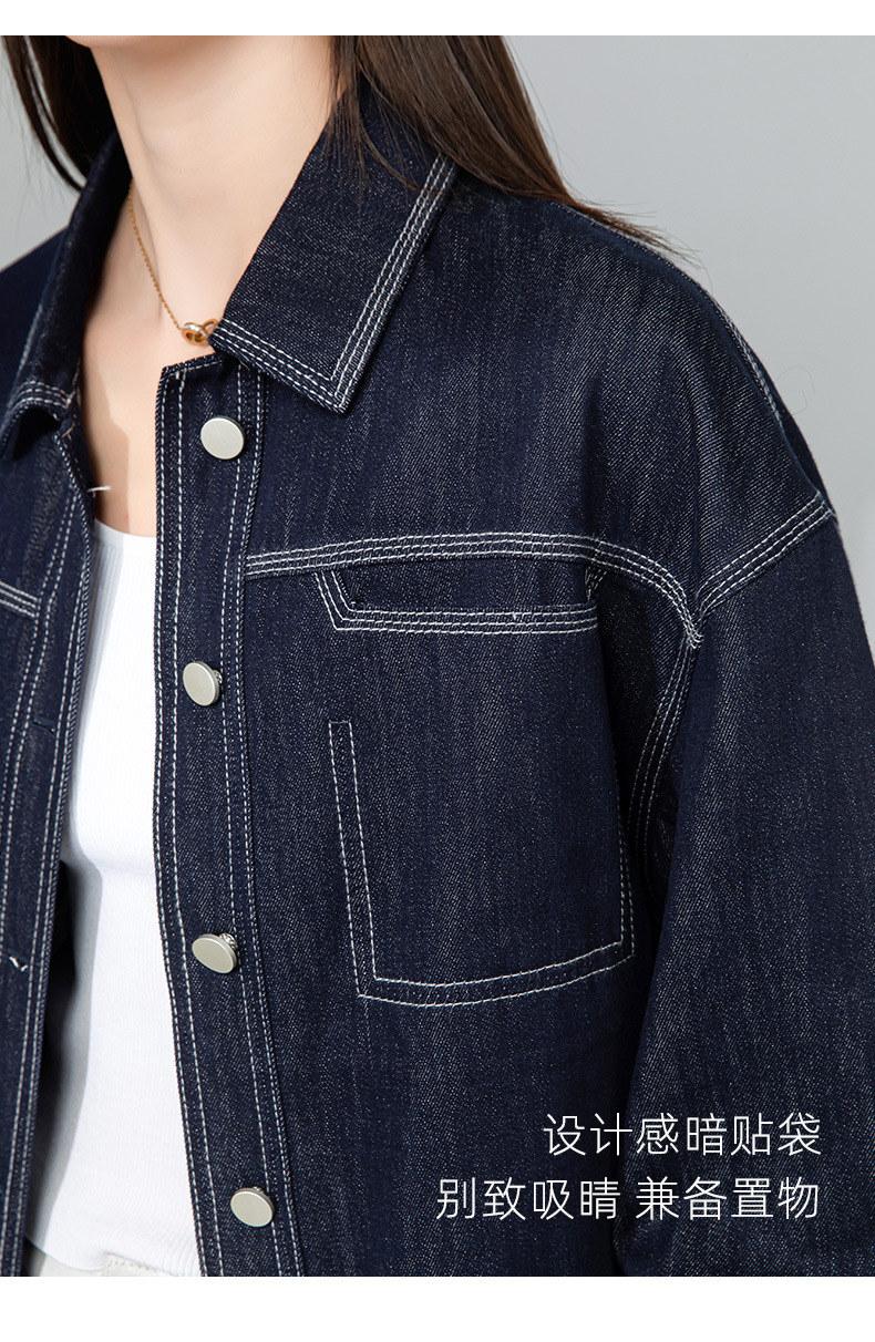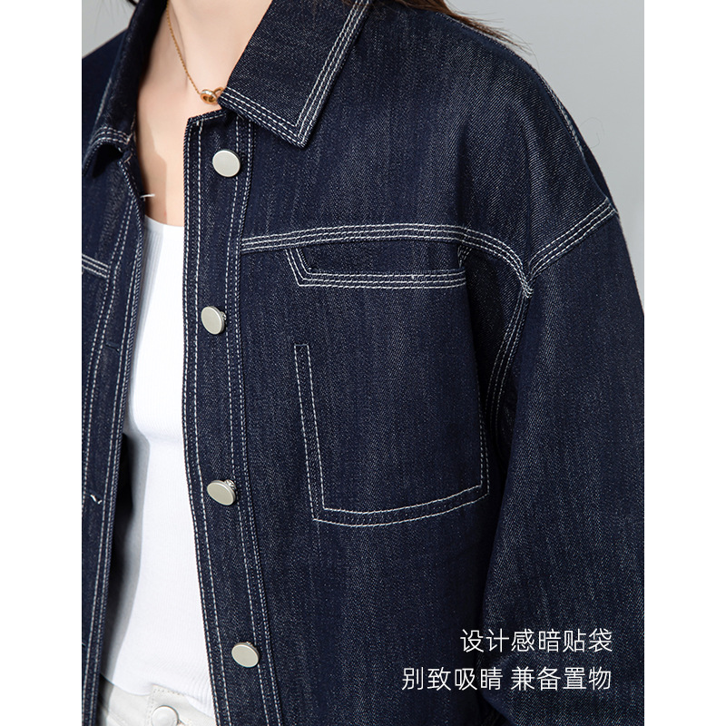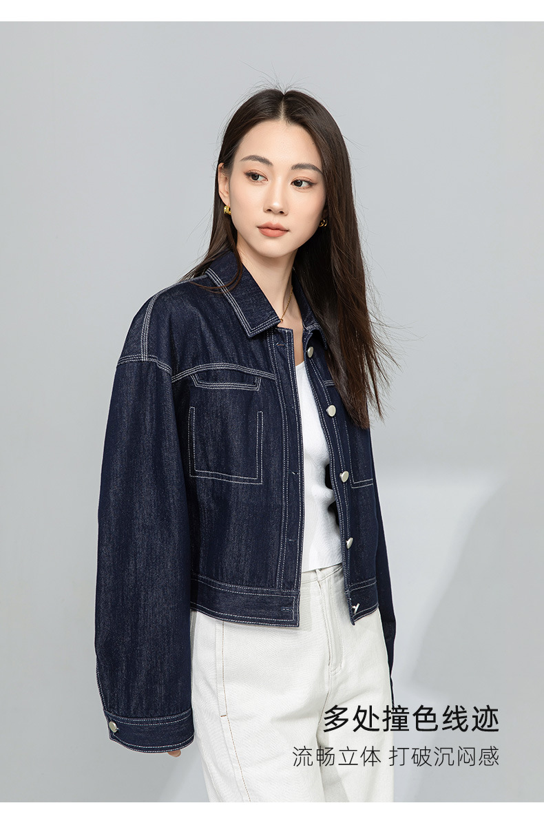 牛仔外套女春季新款洗水撞色明线翻领宽松设计感复古牛仔夹克
