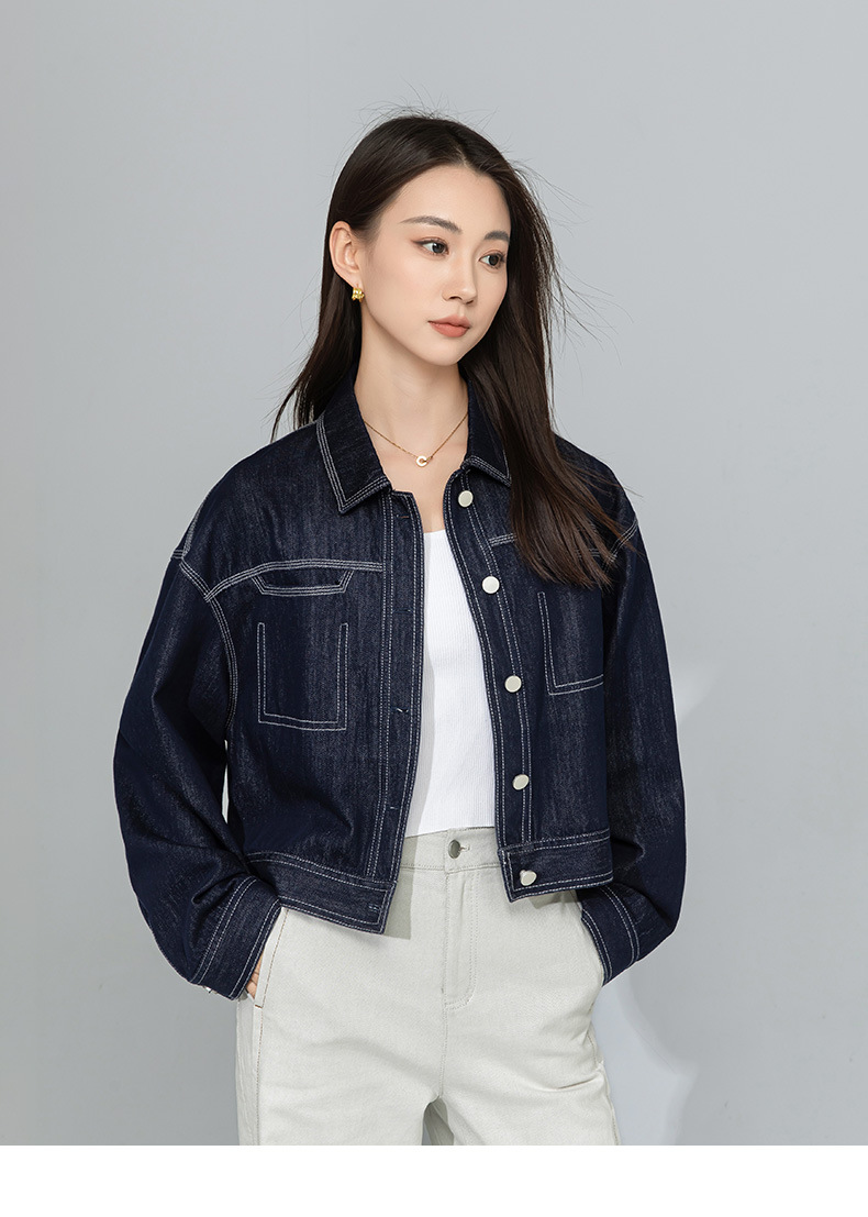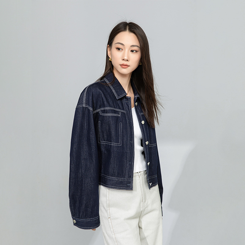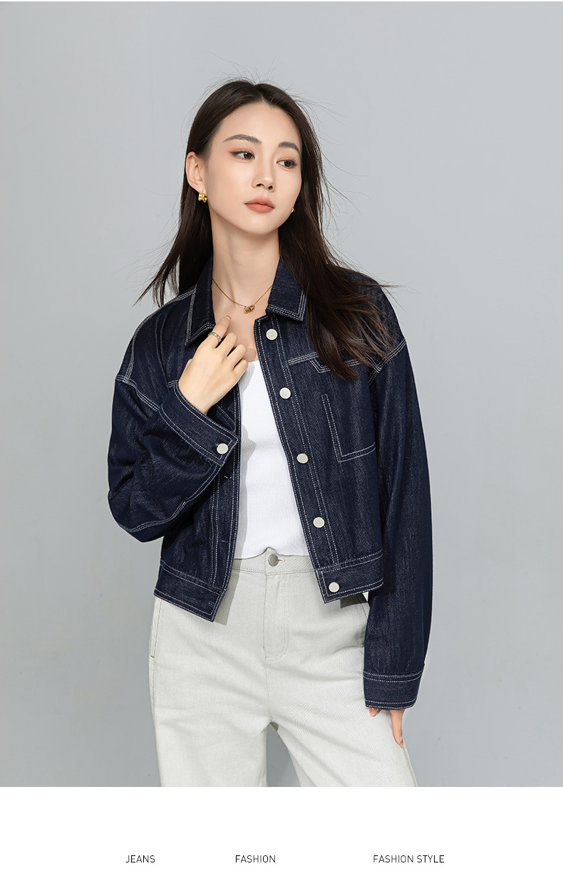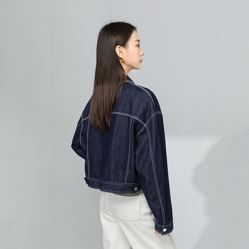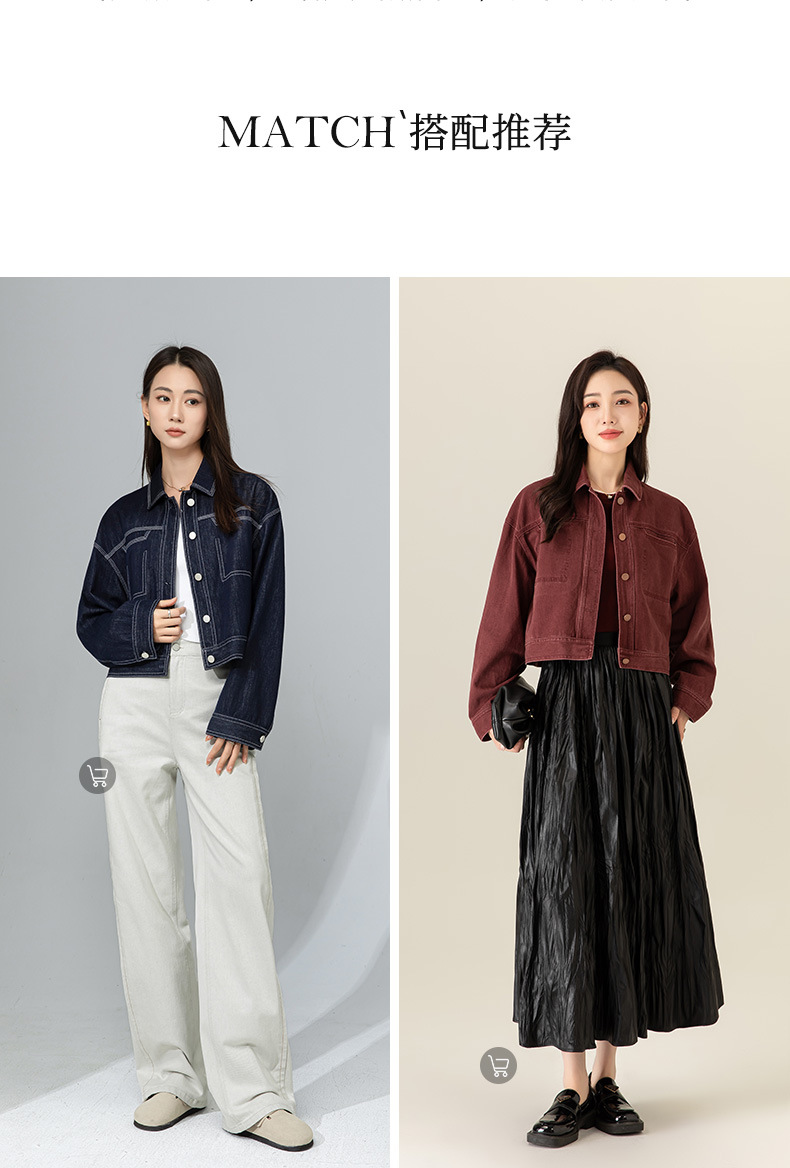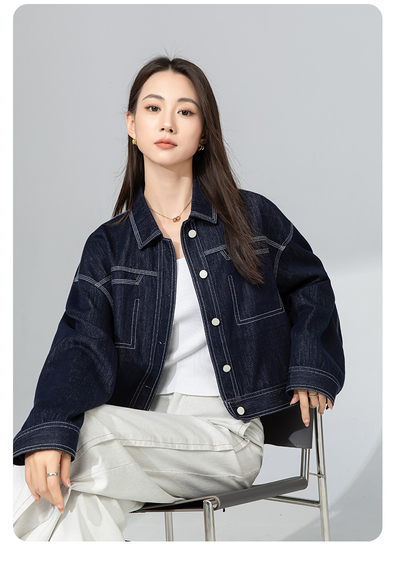 牛仔外套女春季新款洗水撞色明线翻领宽松设计感复古牛仔夹克