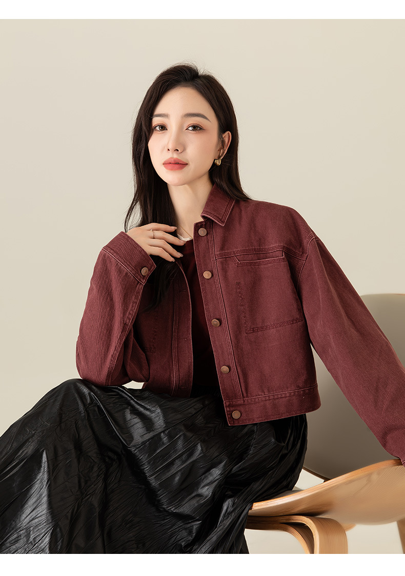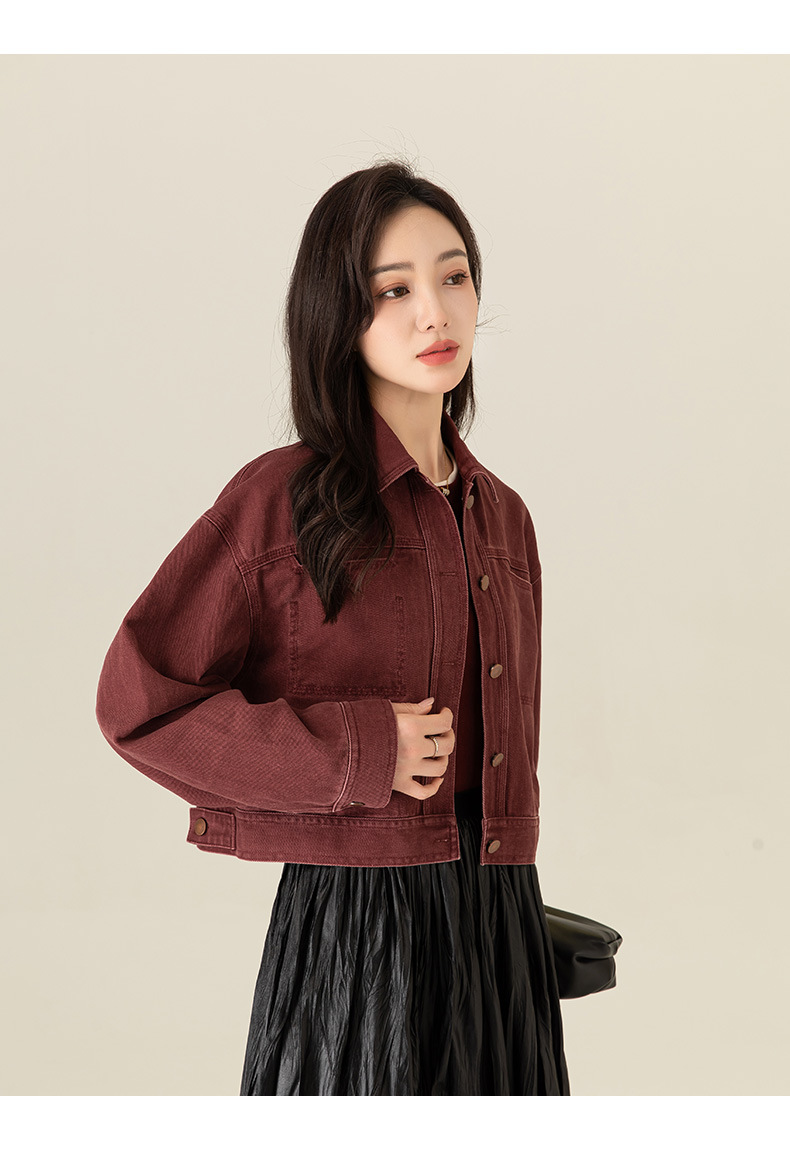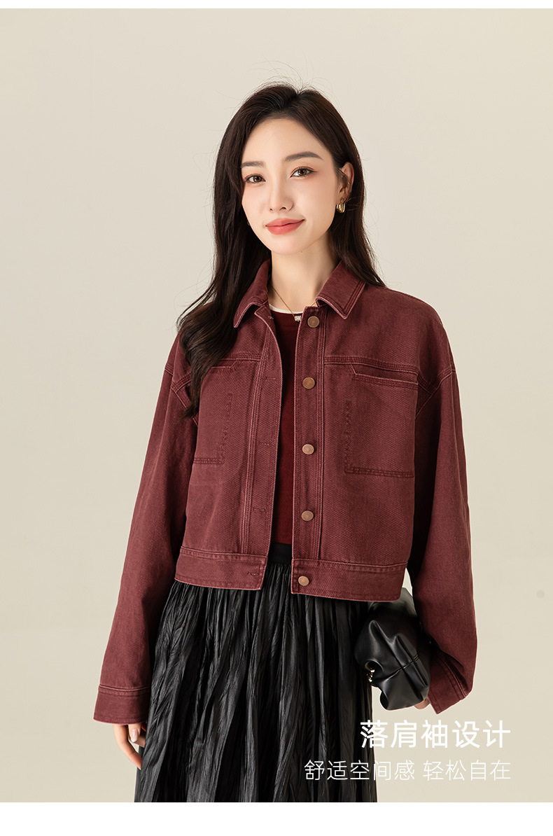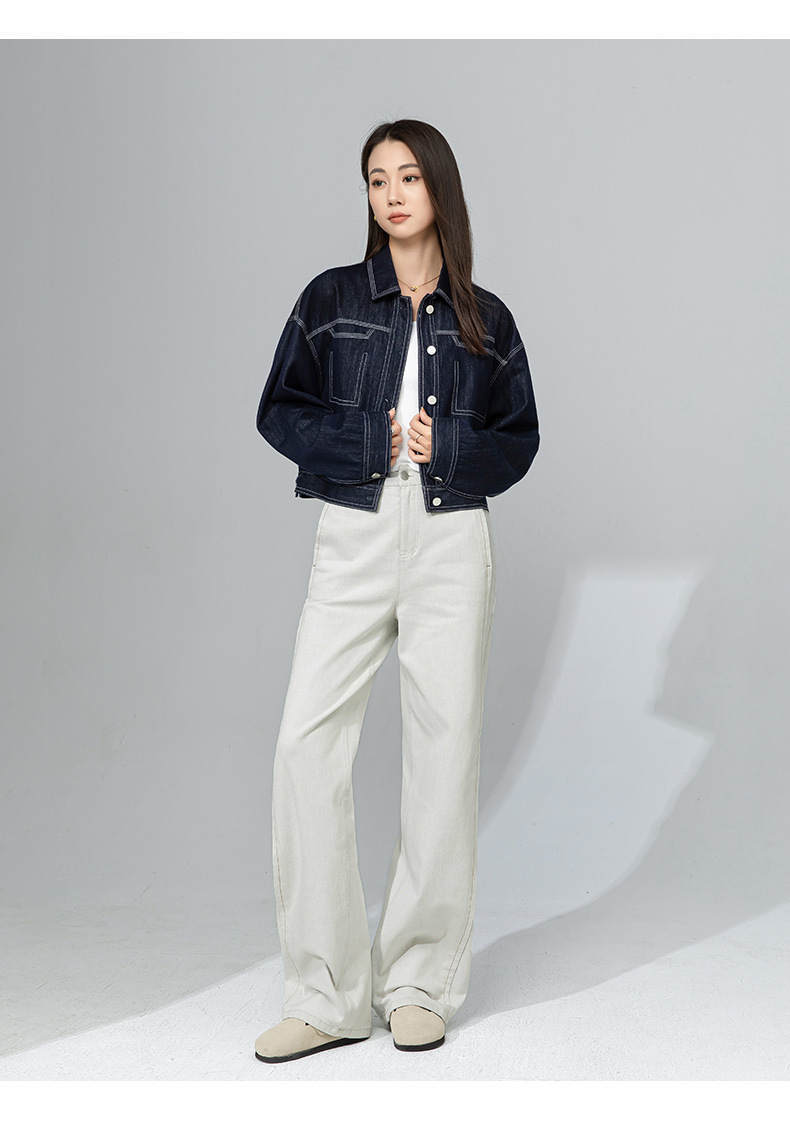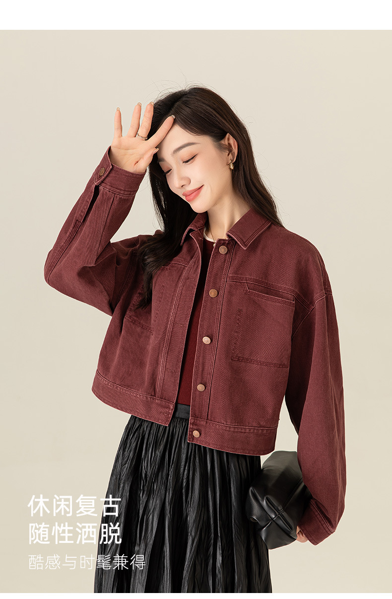 牛仔外套女春季新款洗水撞色明线翻领宽松设计感复古牛仔夹克