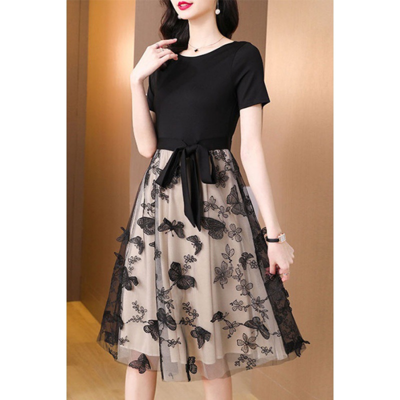 气质名媛高端连衣裙今年流行的裙子夏季新款刺绣假两件网纱裙