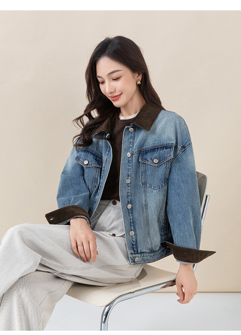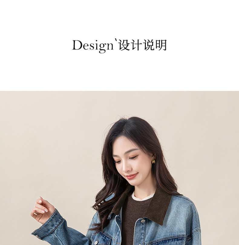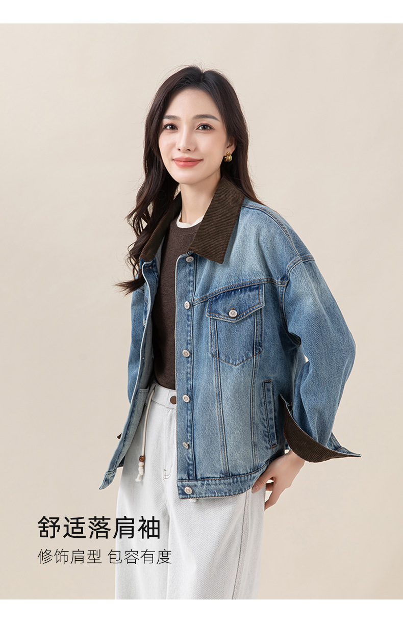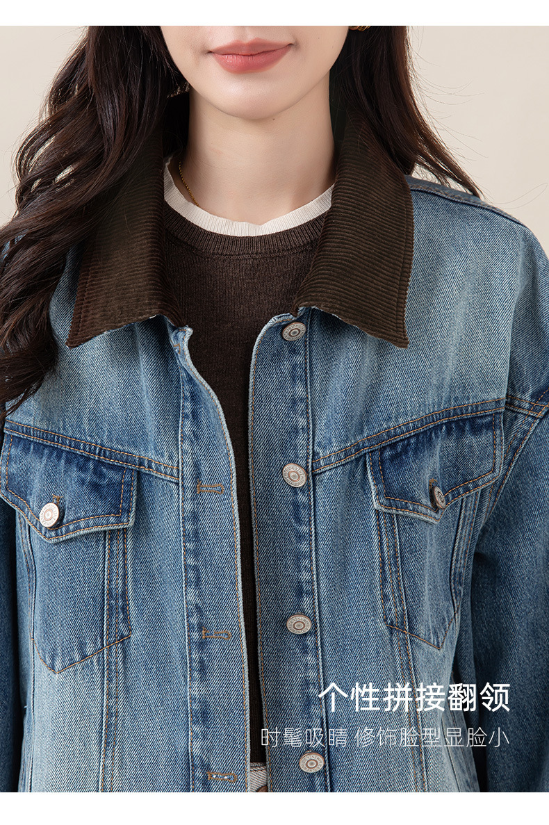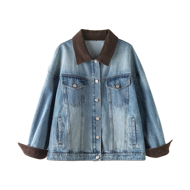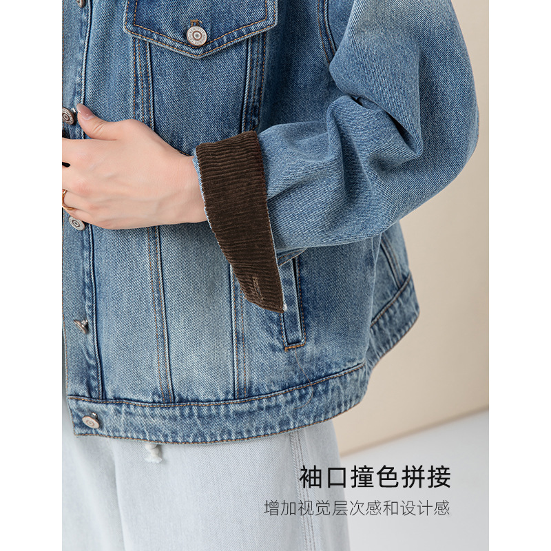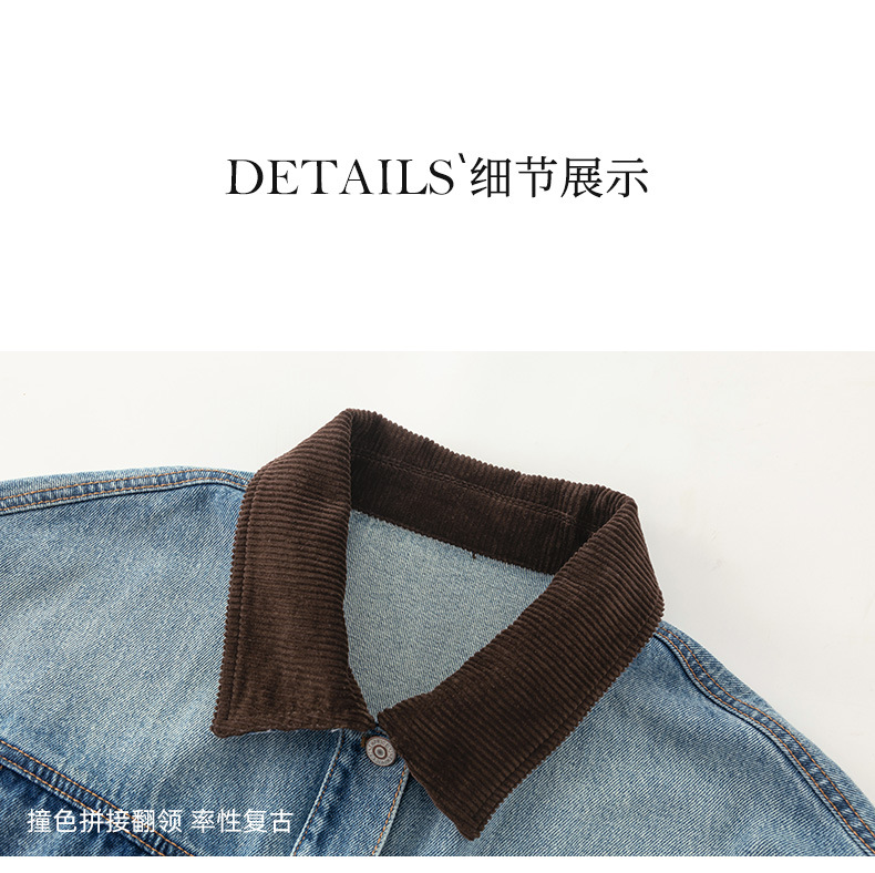 撞色灯芯绒翻廓形牛仔衬衫外套女上衣撞色中性风2025秋季新