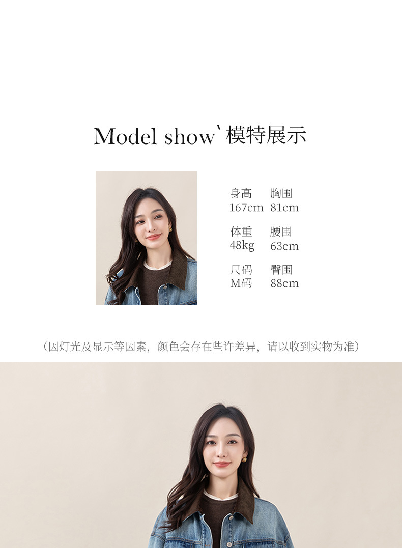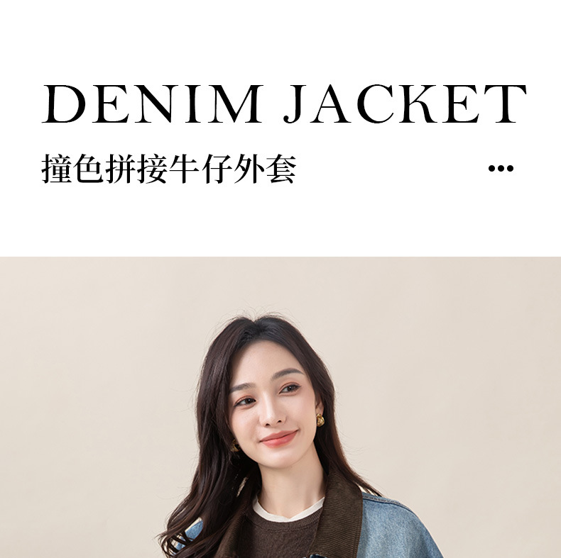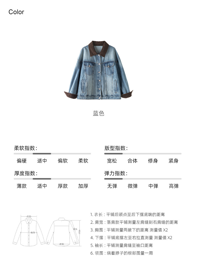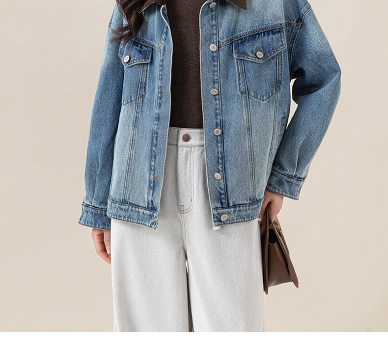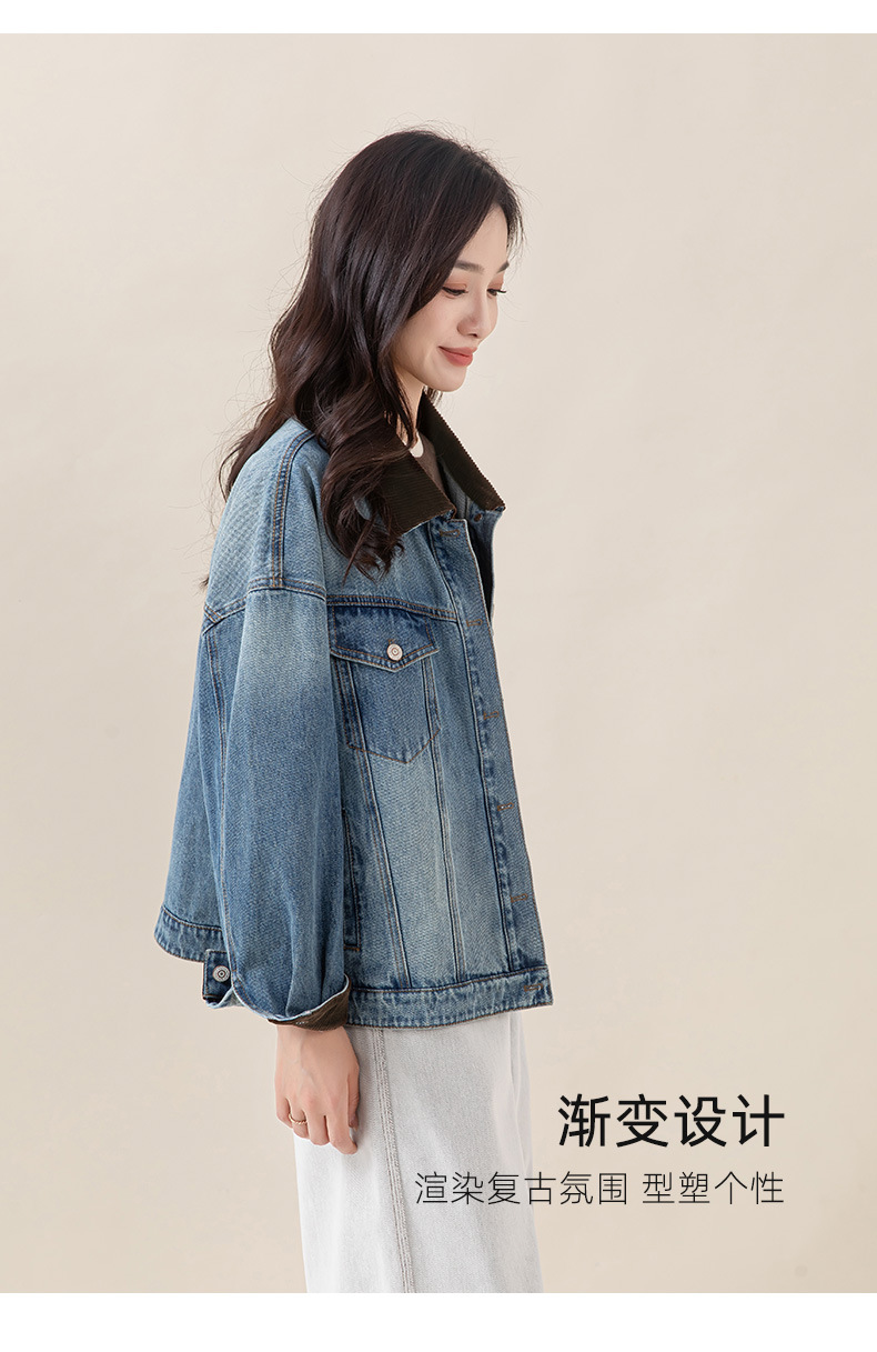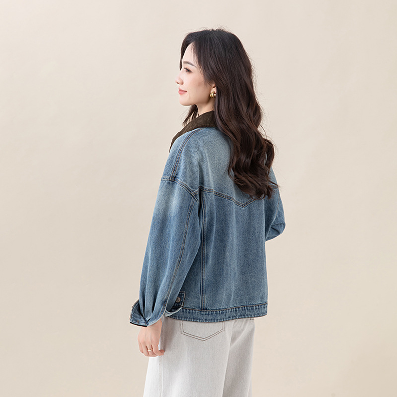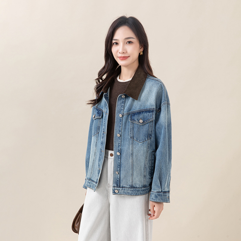 撞色灯芯绒翻廓形牛仔衬衫外套女上衣撞色中性风2025秋季新