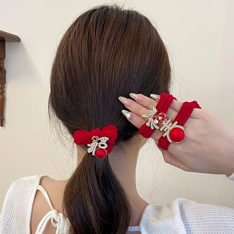 红色本命年龙年头绳过年福喜庆发圈新年发绳头饰女扎头发皮筋