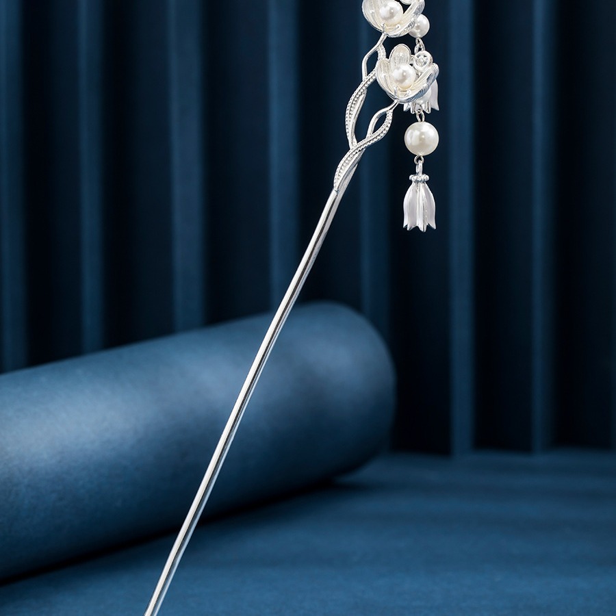 幸福美好铃兰花纯银簪子高级感古风步摇鸢尾发簪七夕送女友礼物