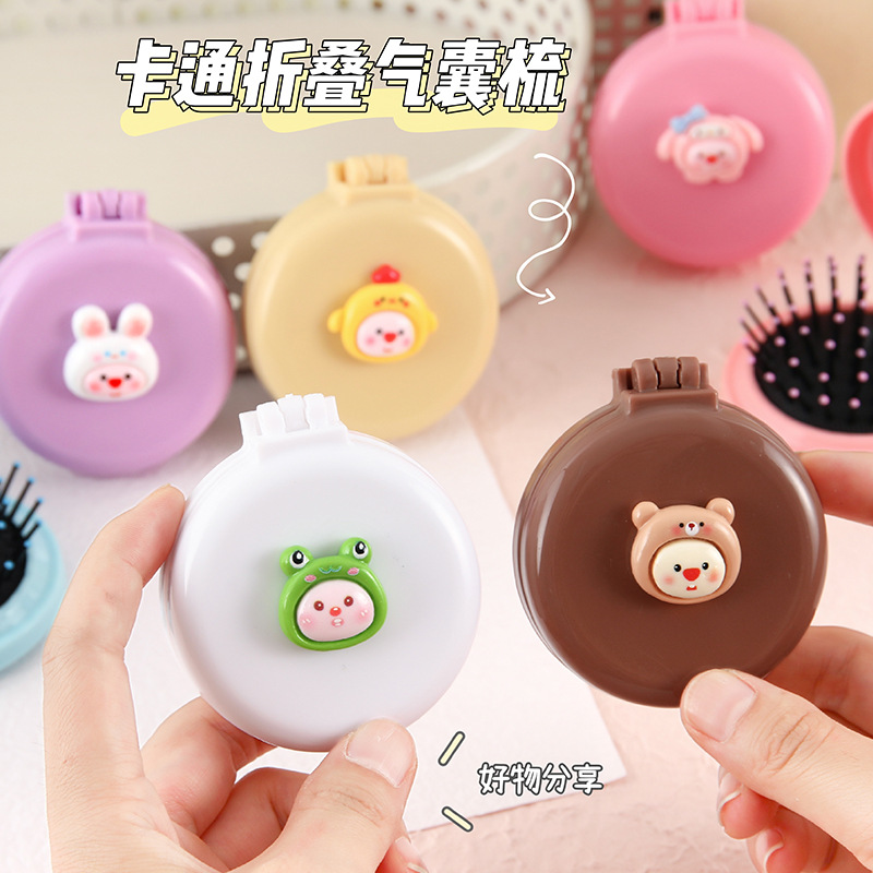 可爱卡通折叠气囊梳按摩梳镜子一体小巧迷你气垫梳便携随身小梳子