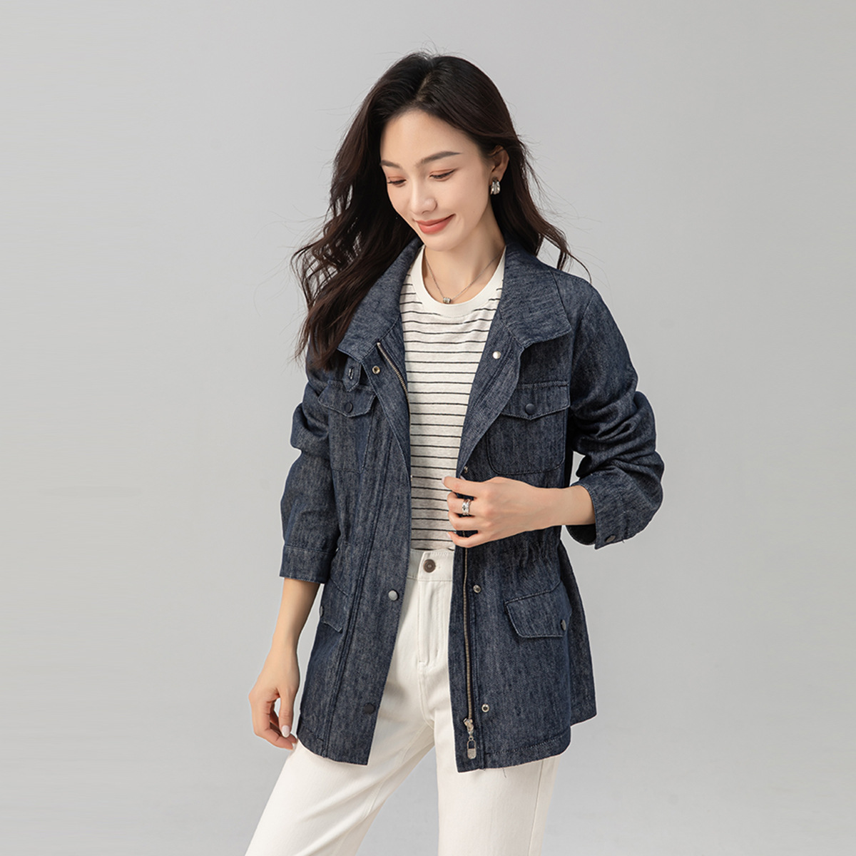 牛仔外套女2025秋季新款内里抽绳宽松显瘦老钱风上衣