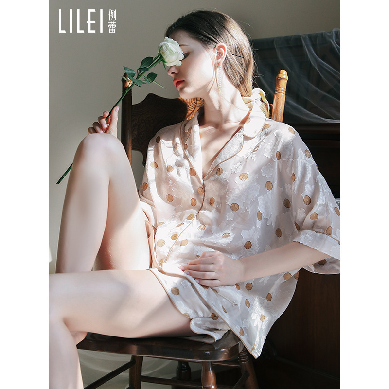 睡衣女夏季短袖套装两件套冰丝复古宽松提花流苏春夏家居服可外穿