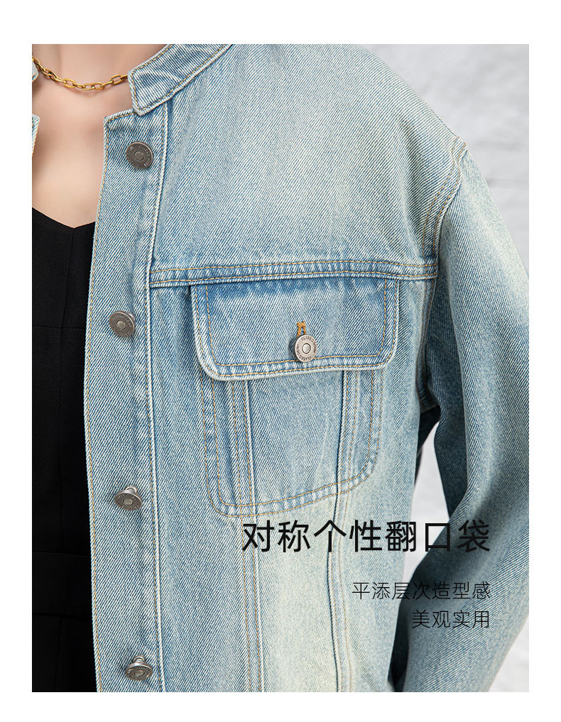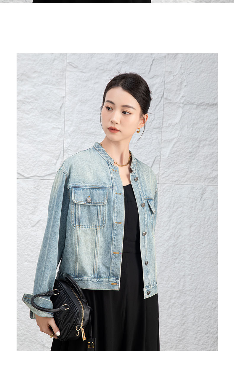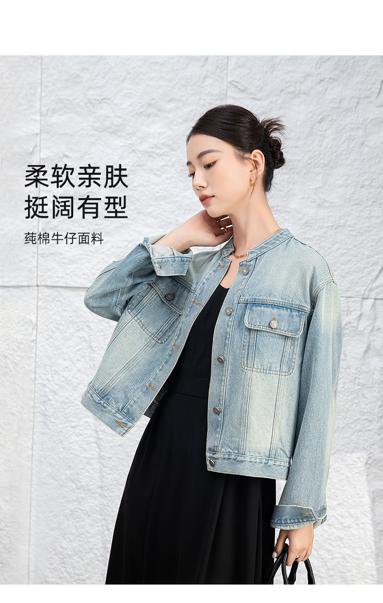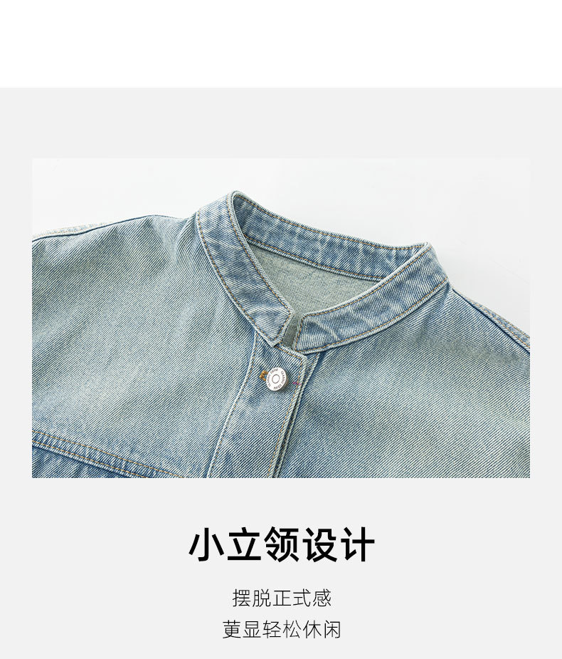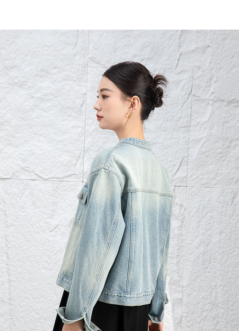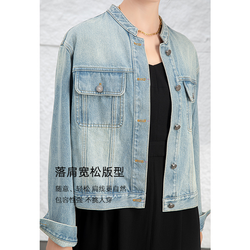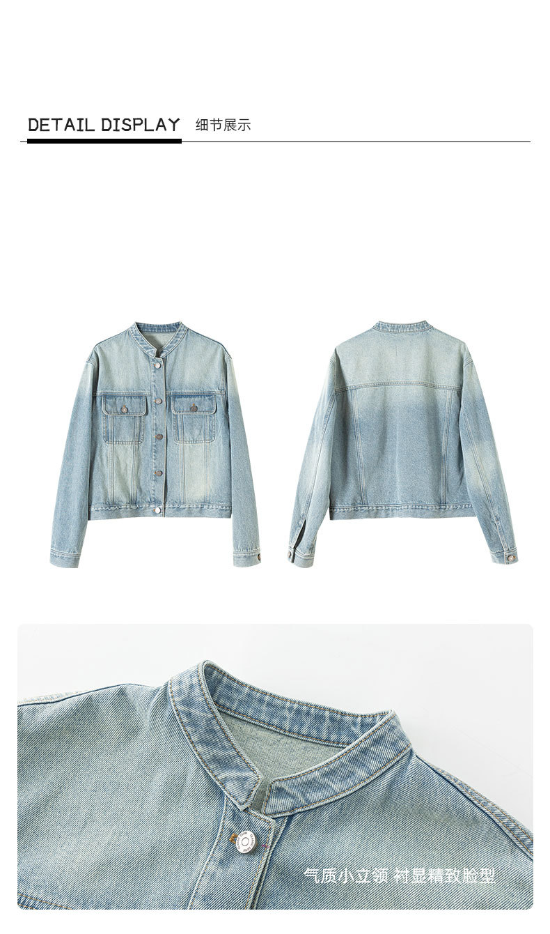 复古牛仔短外套女2025秋季新款水洗小立领休闲浅色宽松夹克