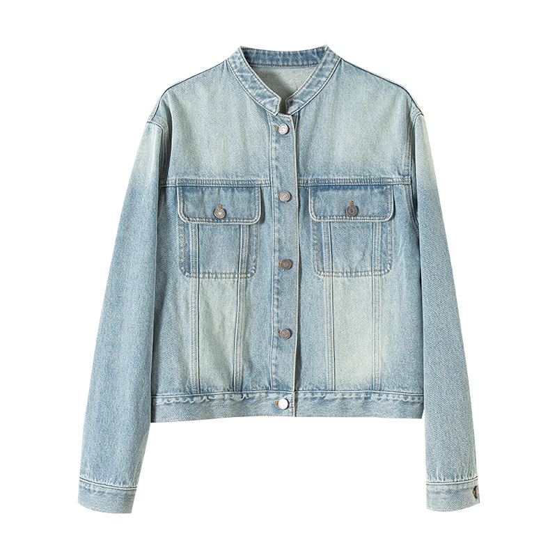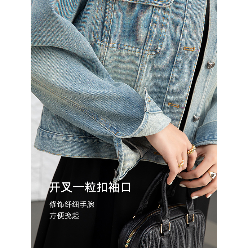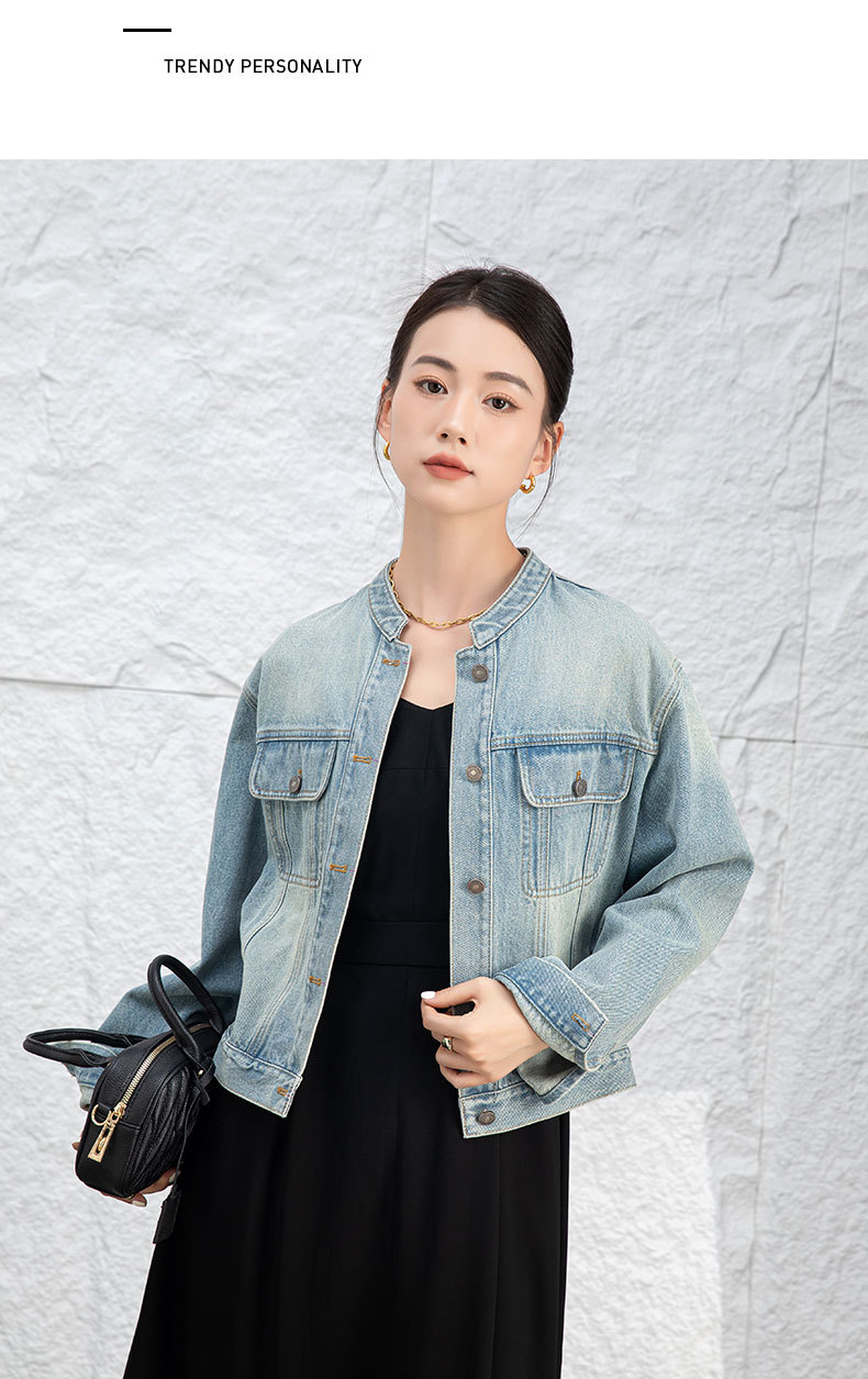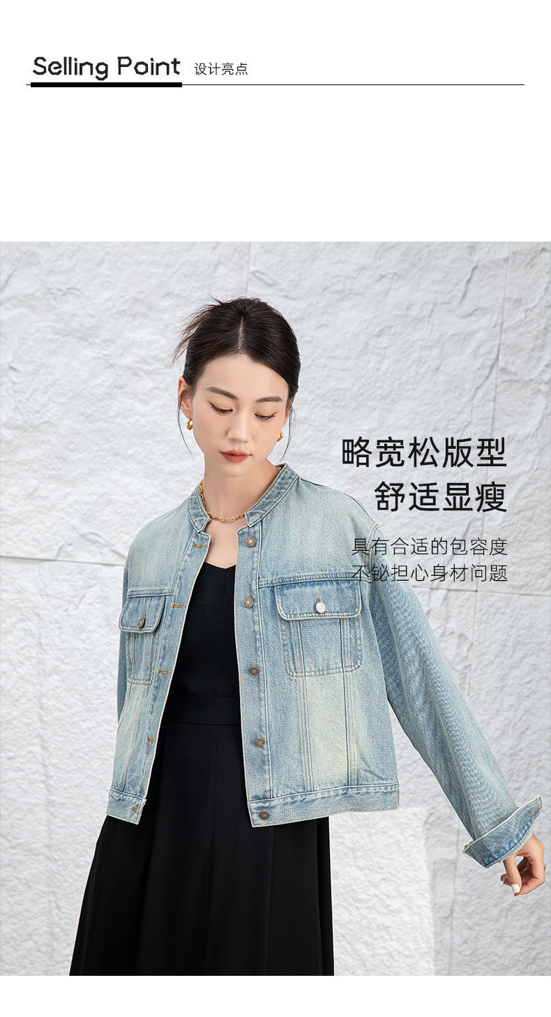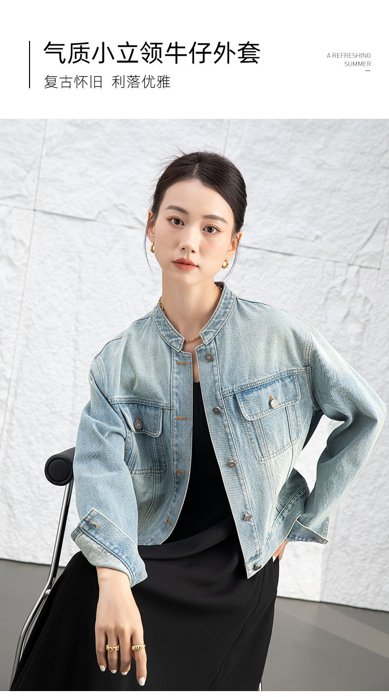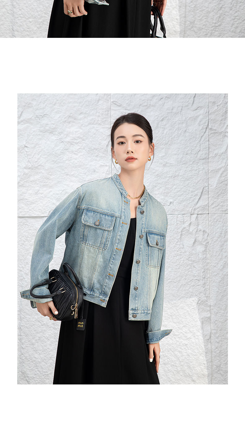 复古牛仔短外套女2025秋季新款水洗小立领休闲浅色宽松夹克