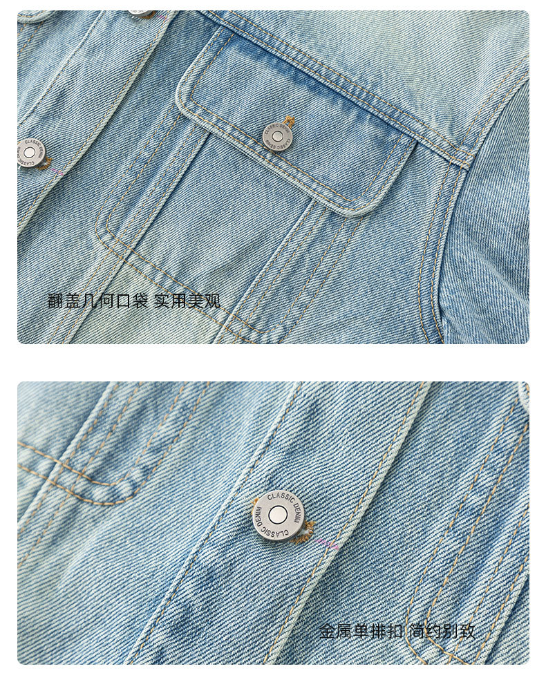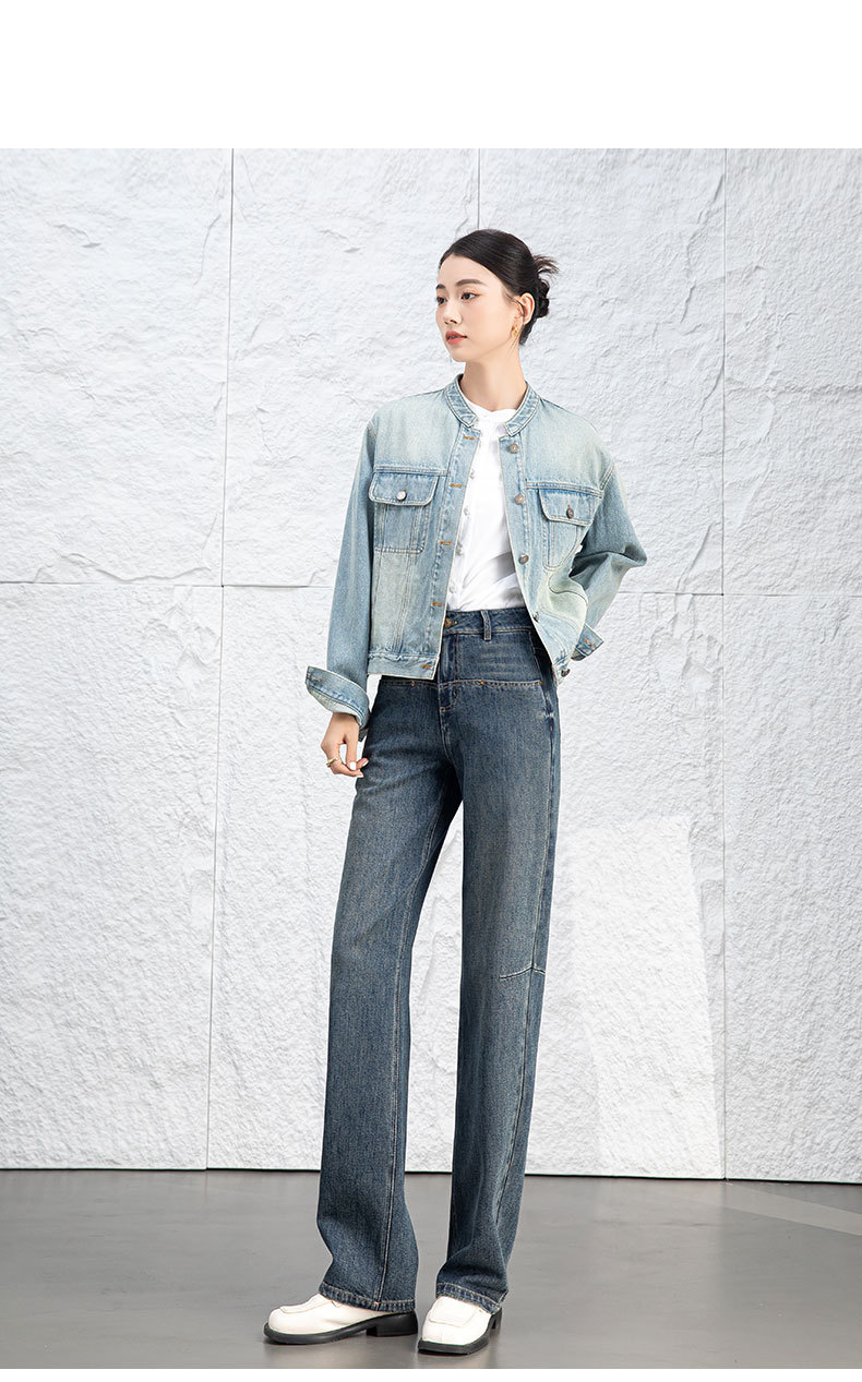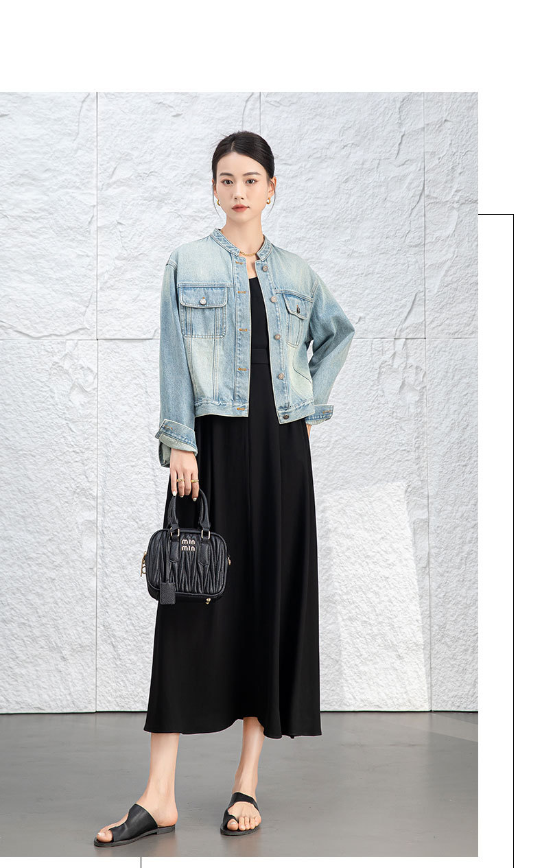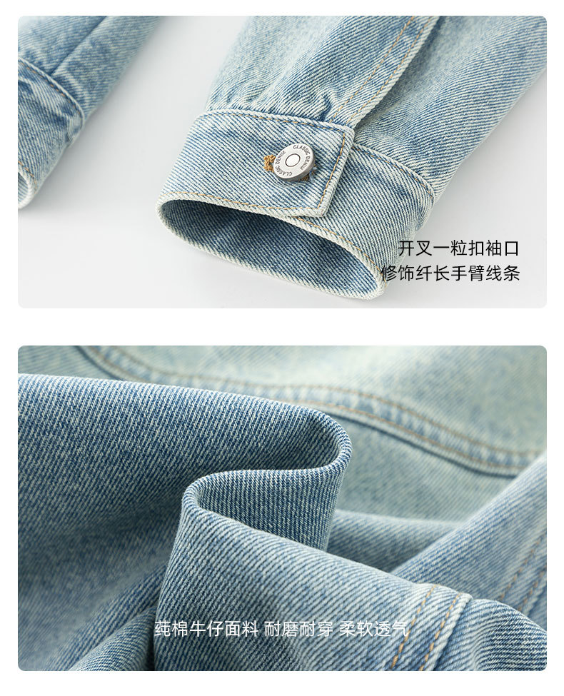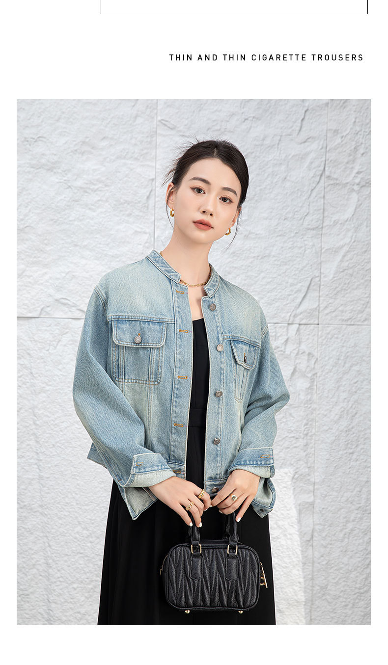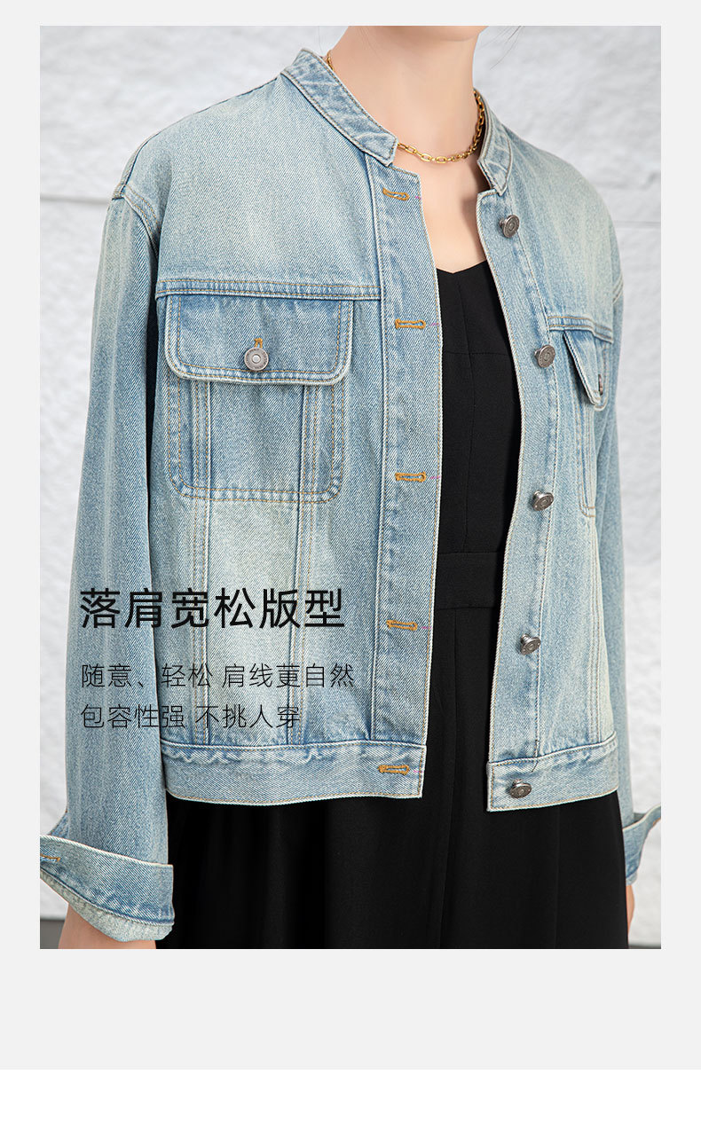 复古牛仔短外套女2025秋季新款水洗小立领休闲浅色宽松夹克