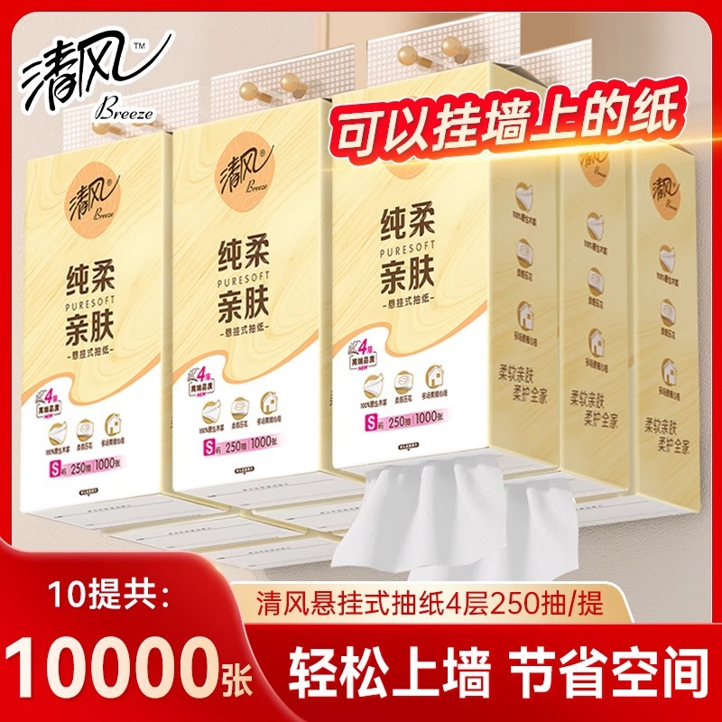 清风原生木浆挂抽4层加厚悬挂式抽纸大包厕纸纯柔纸巾家用面巾纸
