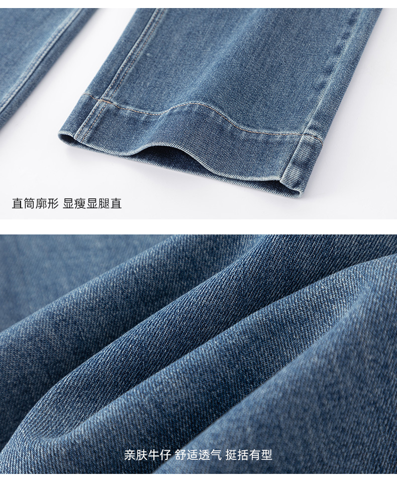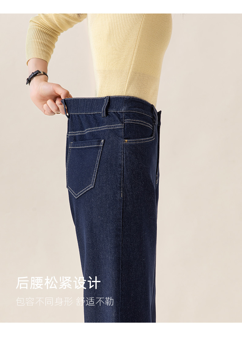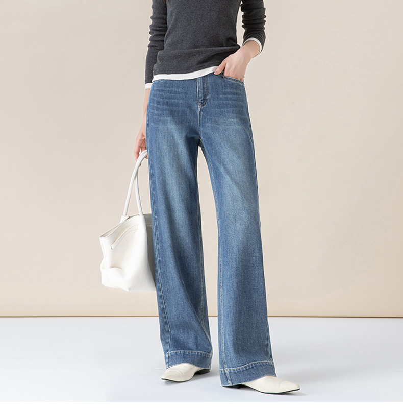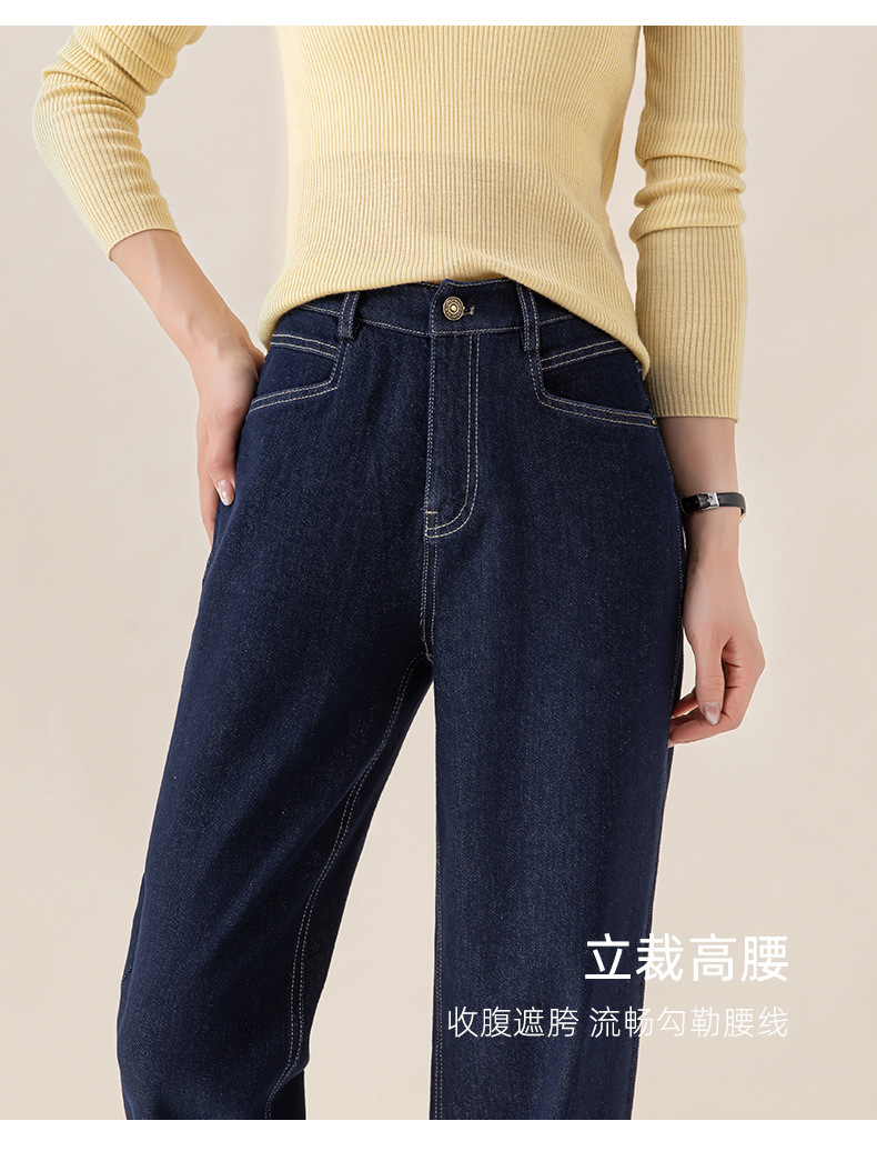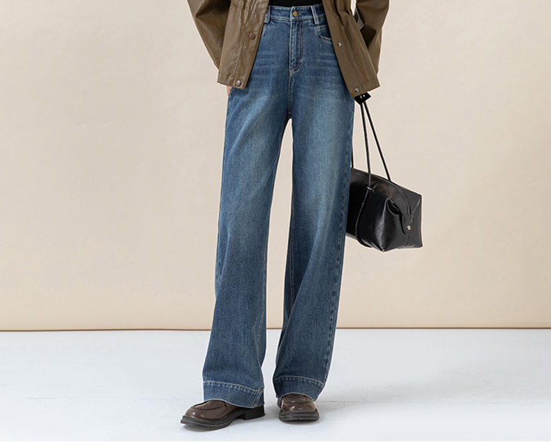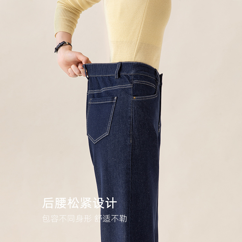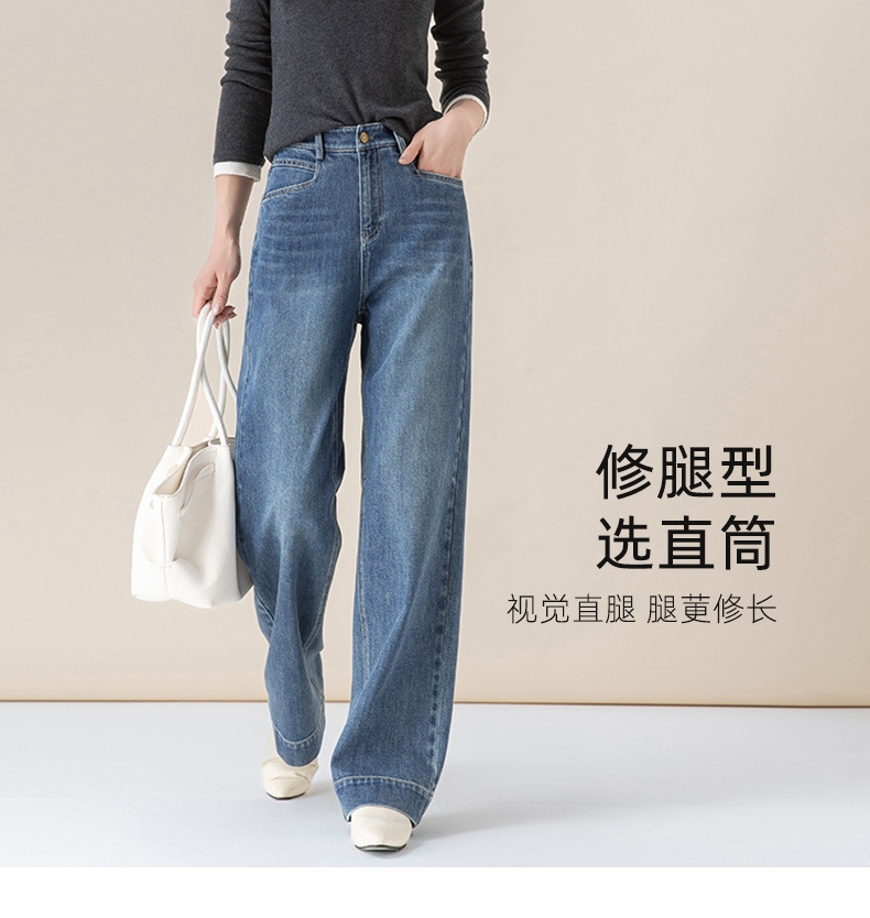 秋季新款丹宁蓝防褪色宽松垂感窄版阔腿裤女小个子直筒牛仔裤