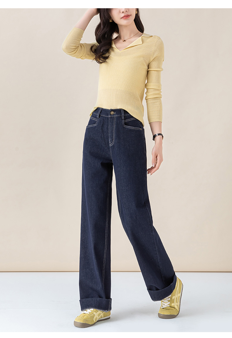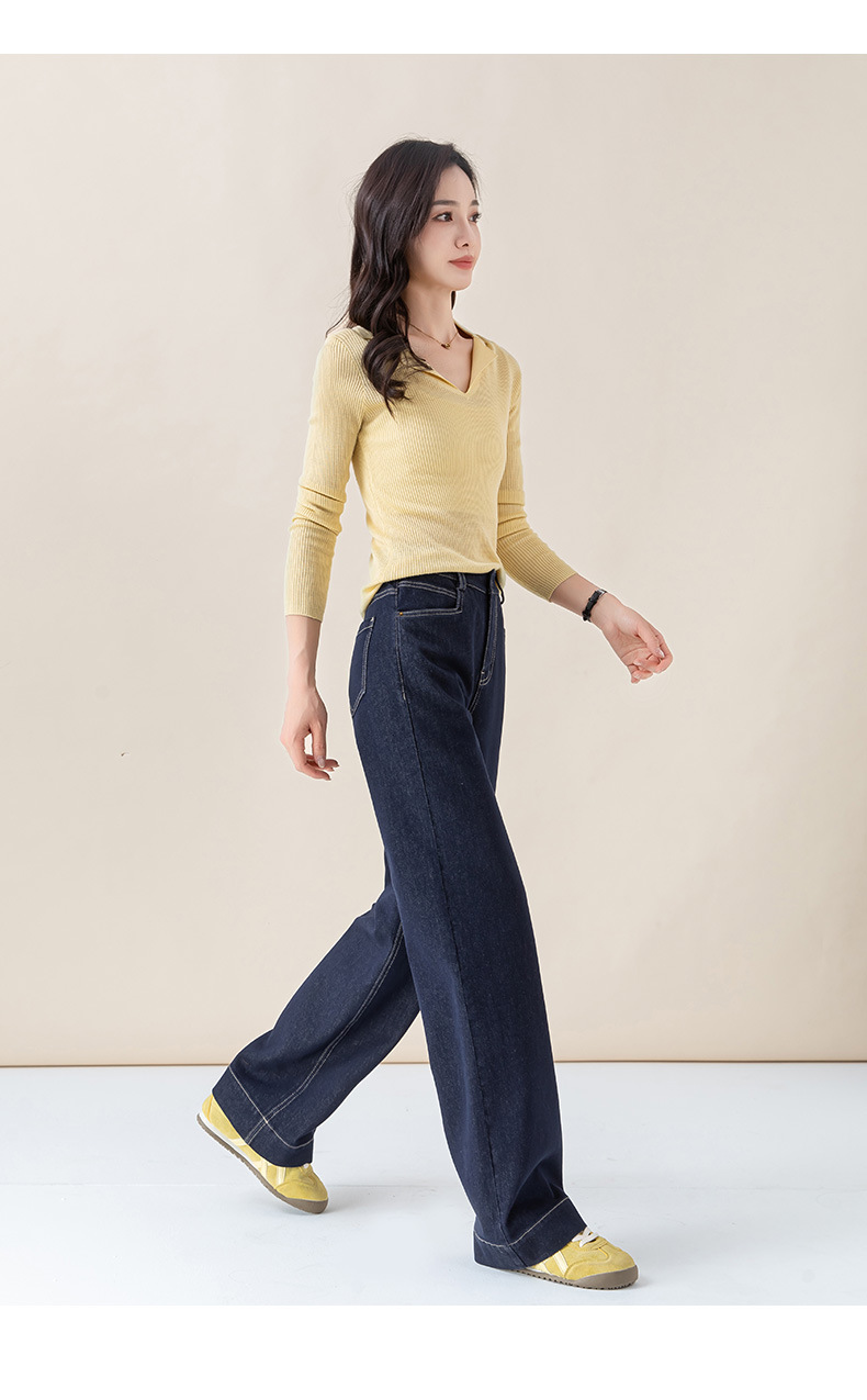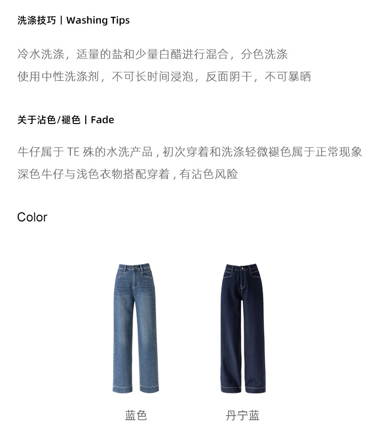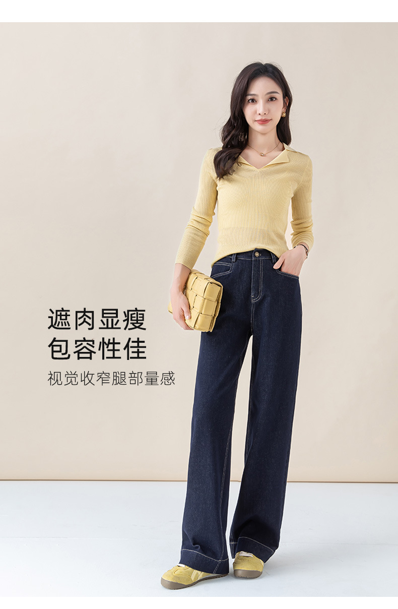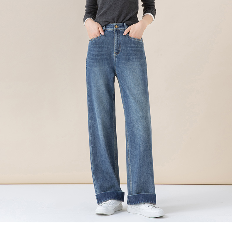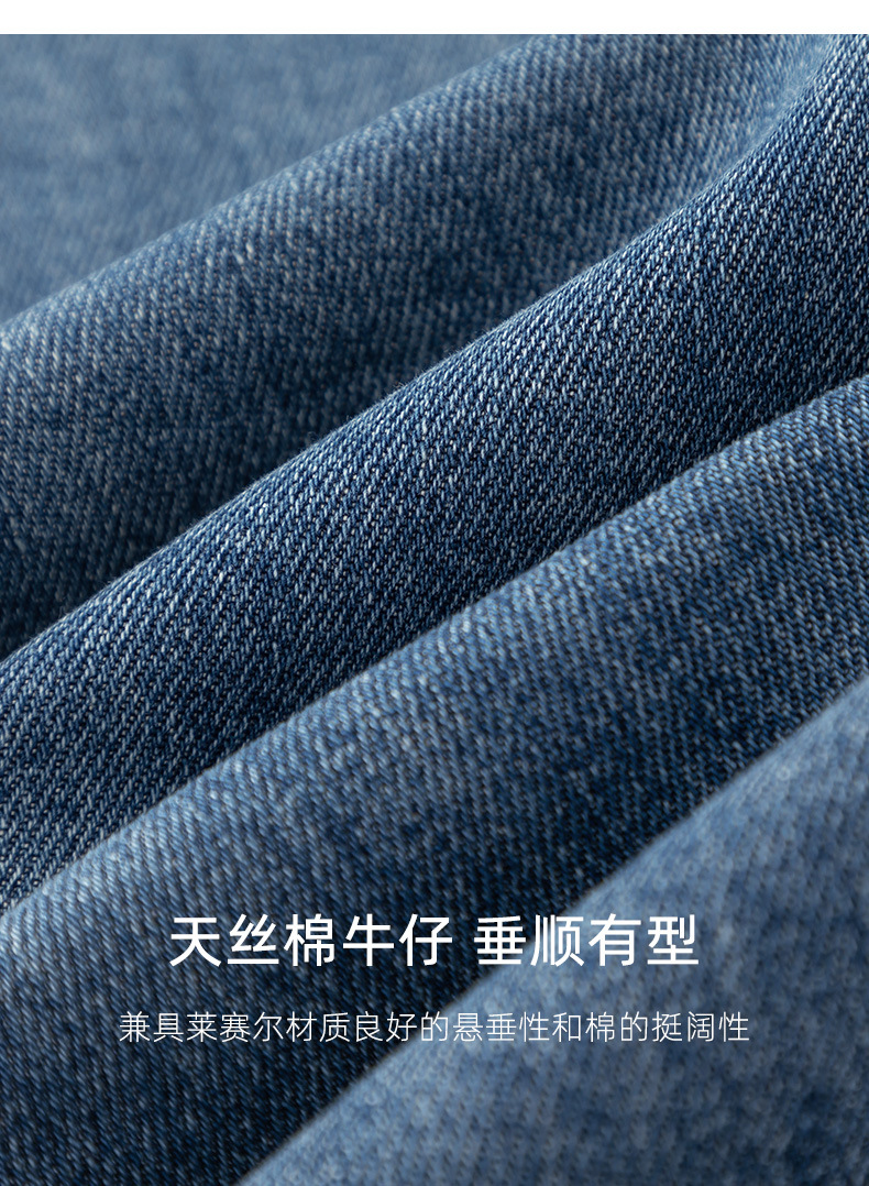 秋季新款丹宁蓝防褪色宽松垂感窄版阔腿裤女小个子直筒牛仔裤