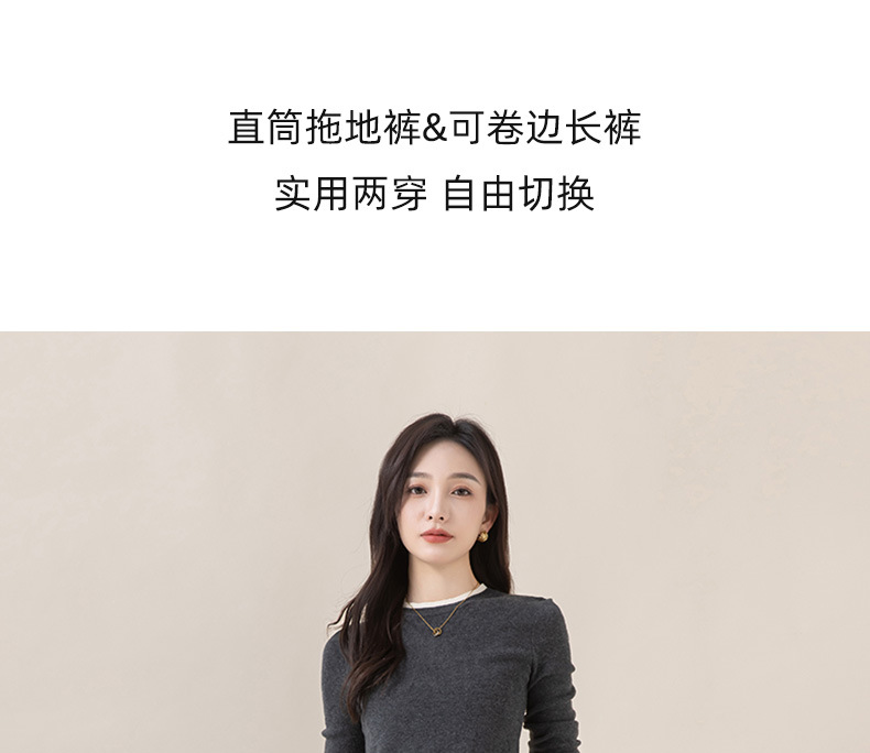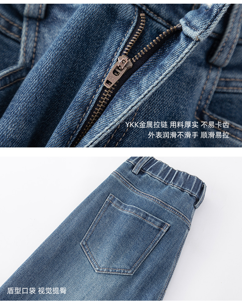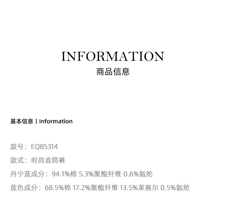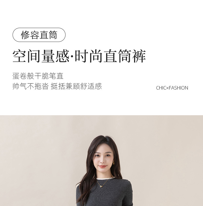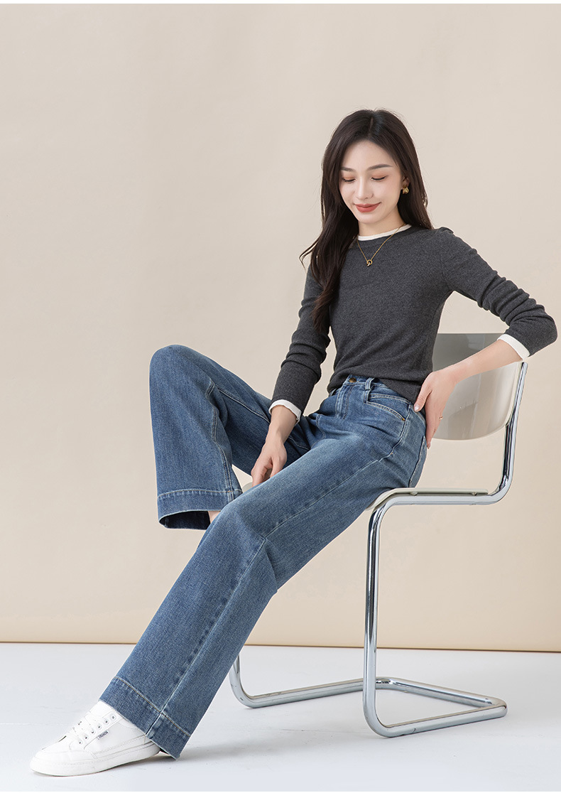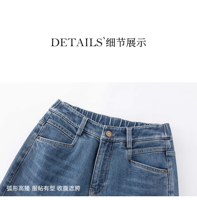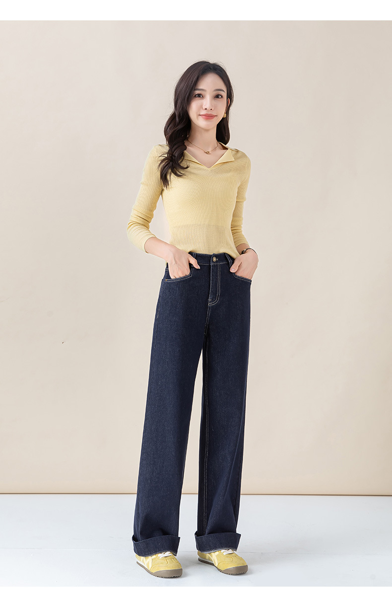 秋季新款丹宁蓝防褪色宽松垂感窄版阔腿裤女小个子直筒牛仔裤