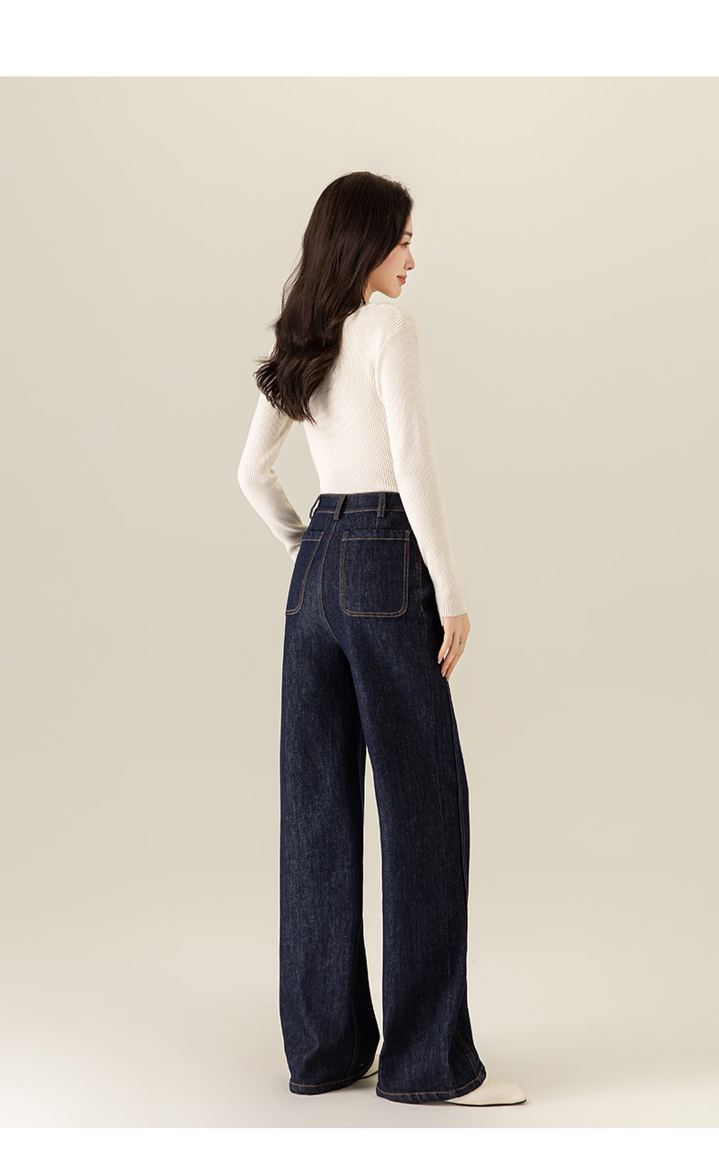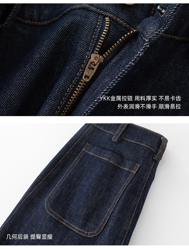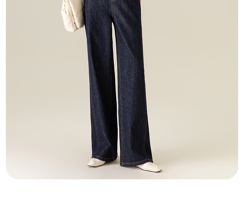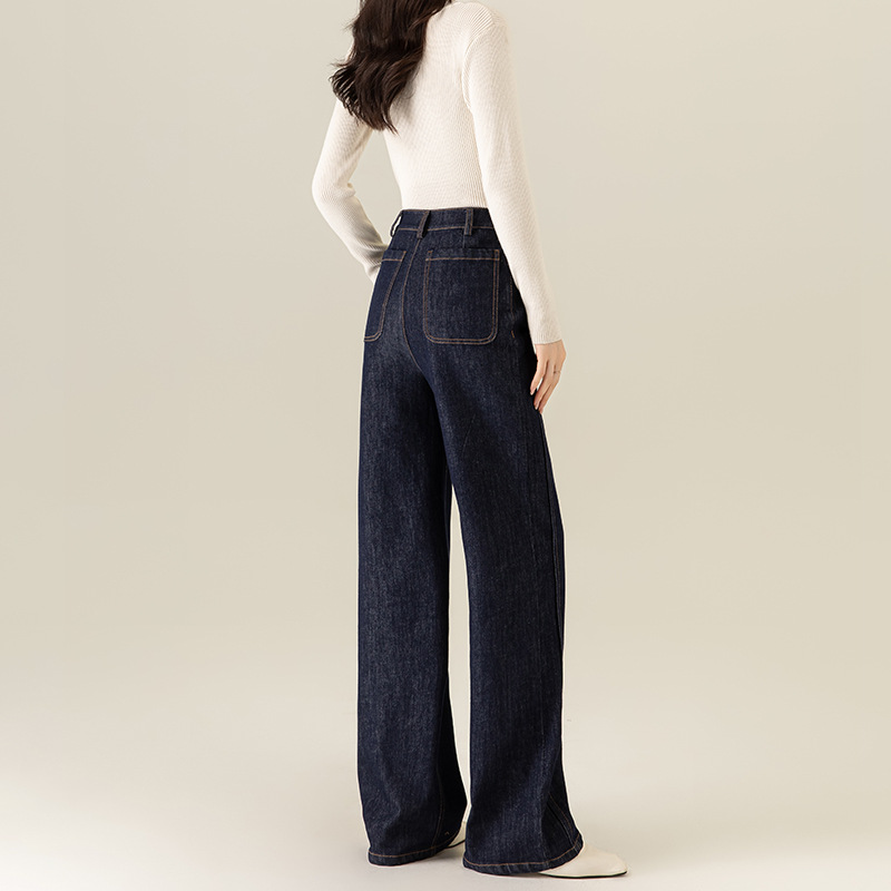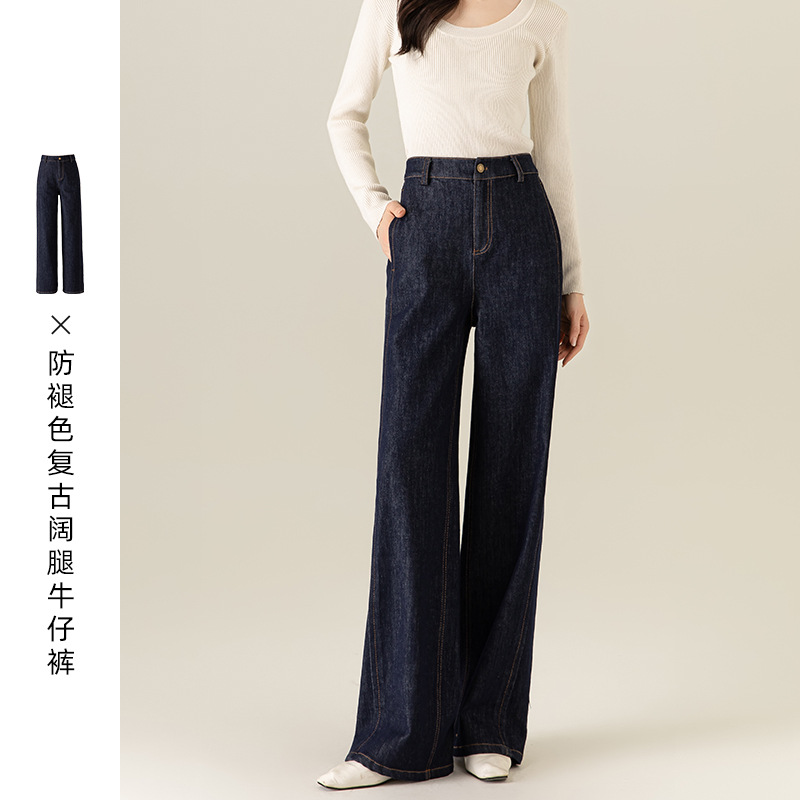 深蓝色不易褪色直筒牛仔裤女2025秋冬新款显瘦阔腿裤子