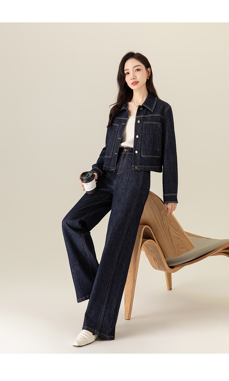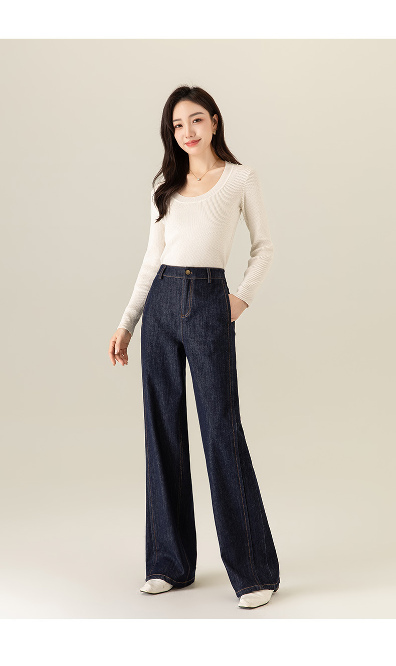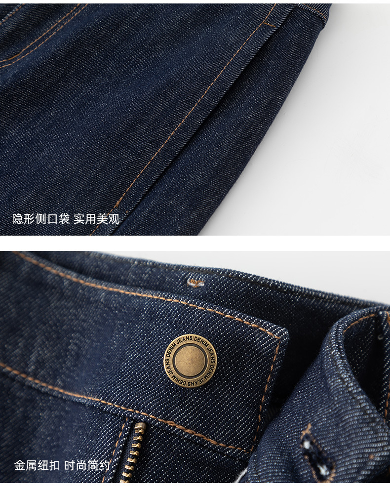 深蓝色不易褪色直筒牛仔裤女2025秋冬新款显瘦阔腿裤子