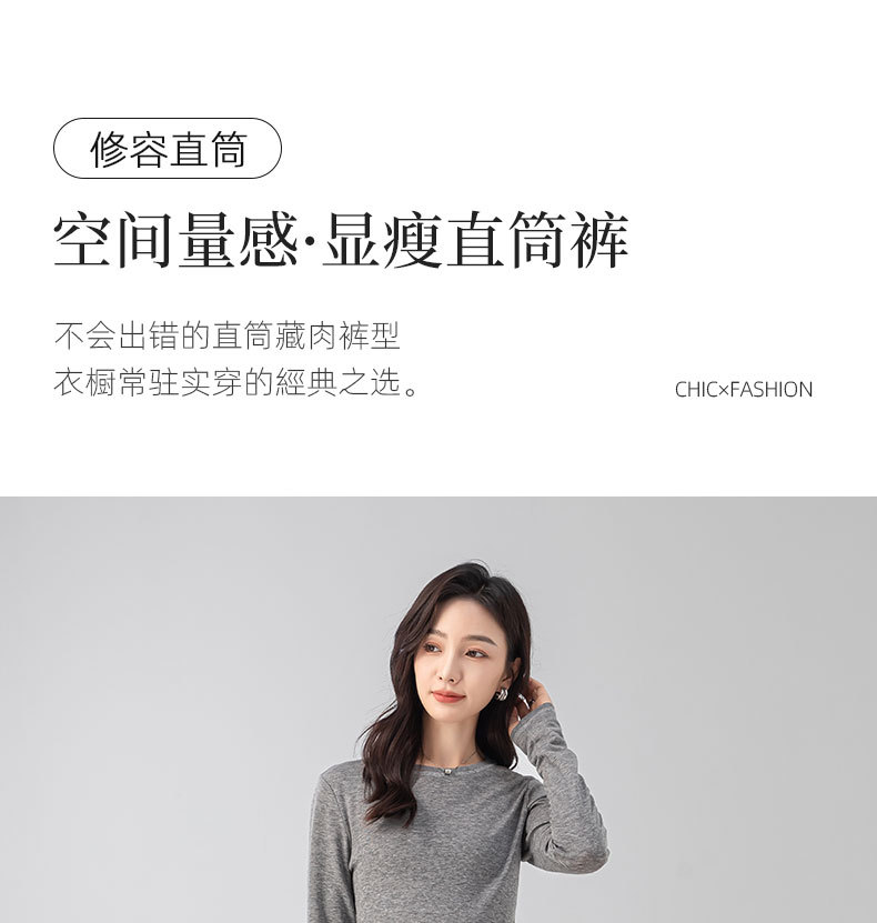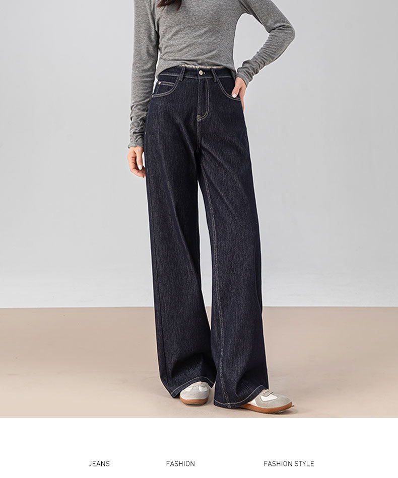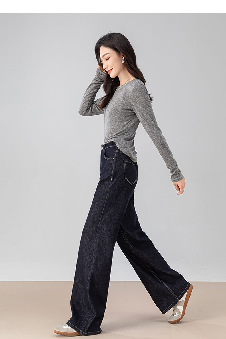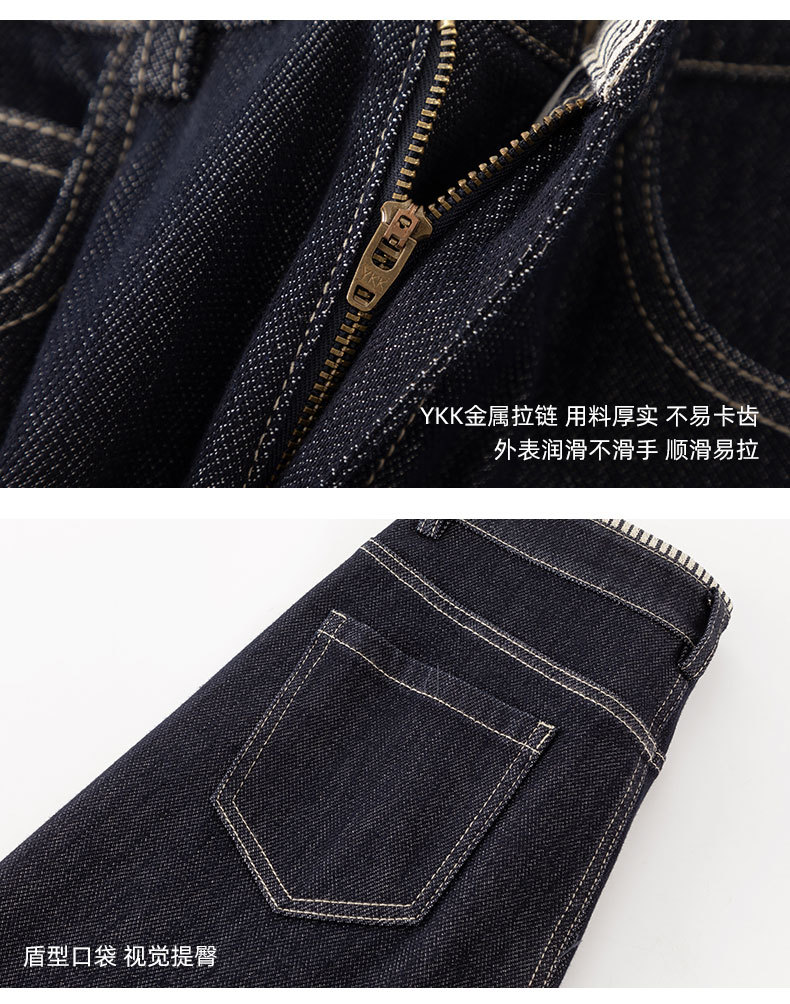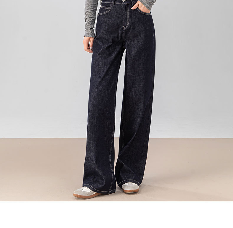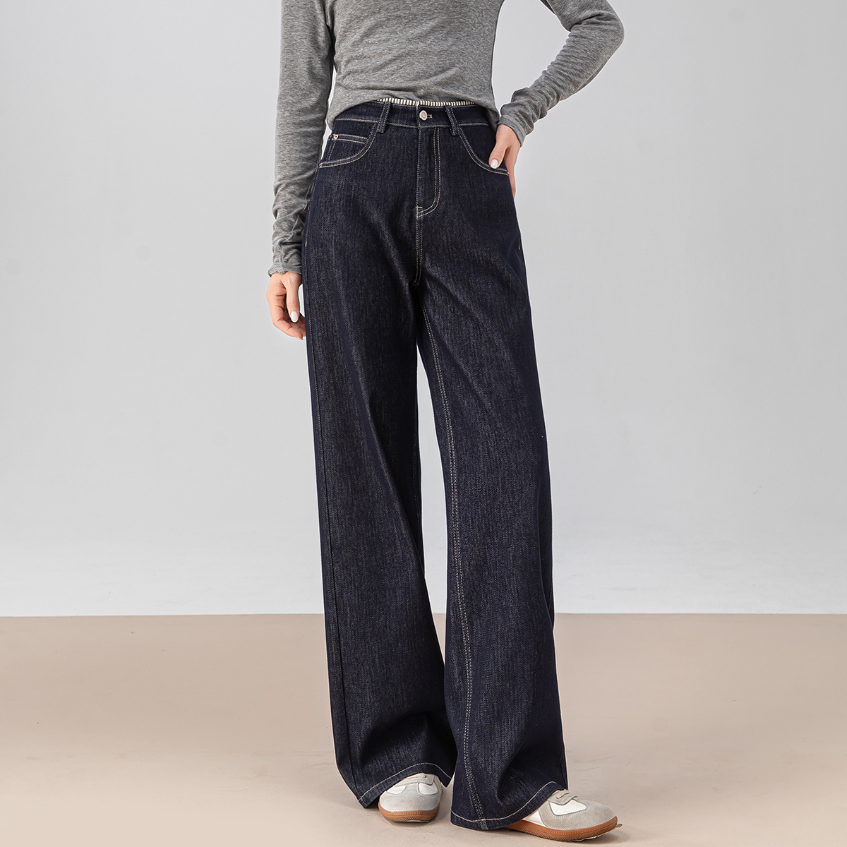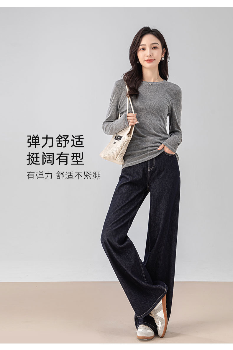 2025经典条纹翻边高腰直筒阔腿裤九分牛仔裤女两穿拖地裤子