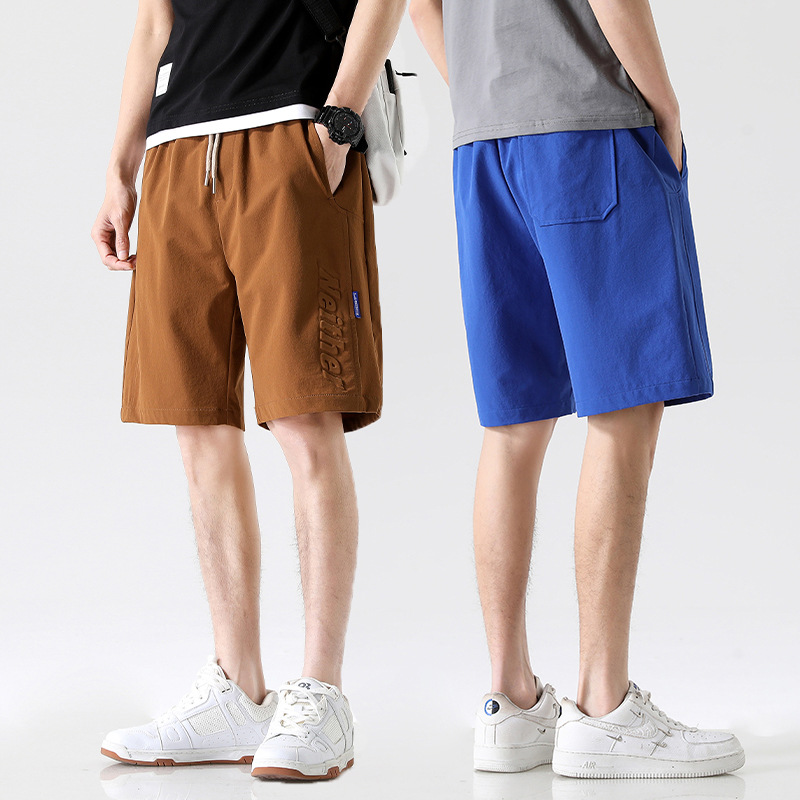 休闲短裤男夏季新款潮牌字母压印直筒五分裤子男青少年运动裤