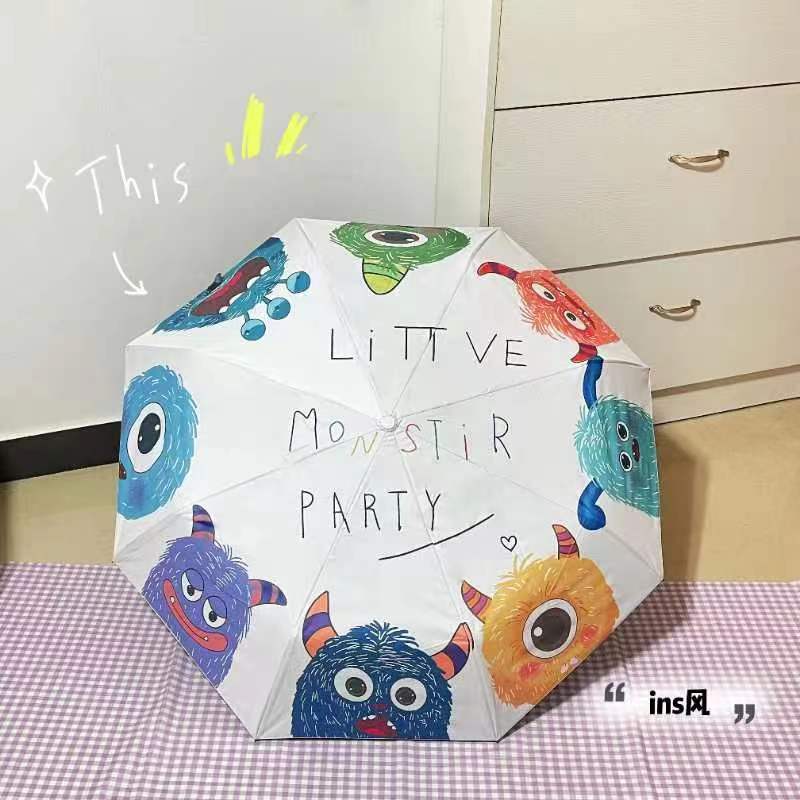 小怪兽家族卡通风格可爱时尚简约晴雨伞遮阳伞太阳伞黑胶防晒两用