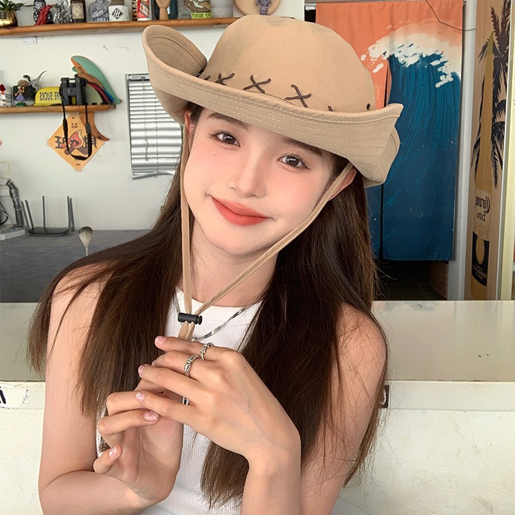 西部牛仔帽子女款显脸小旅游渔夫帽子防晒帽遮阳帽户外登山帽夏男