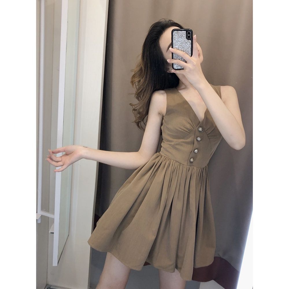 吊带连衣裙新款夏收腰心机裙子仙女超仙森系智熏裙法式桔梗裙