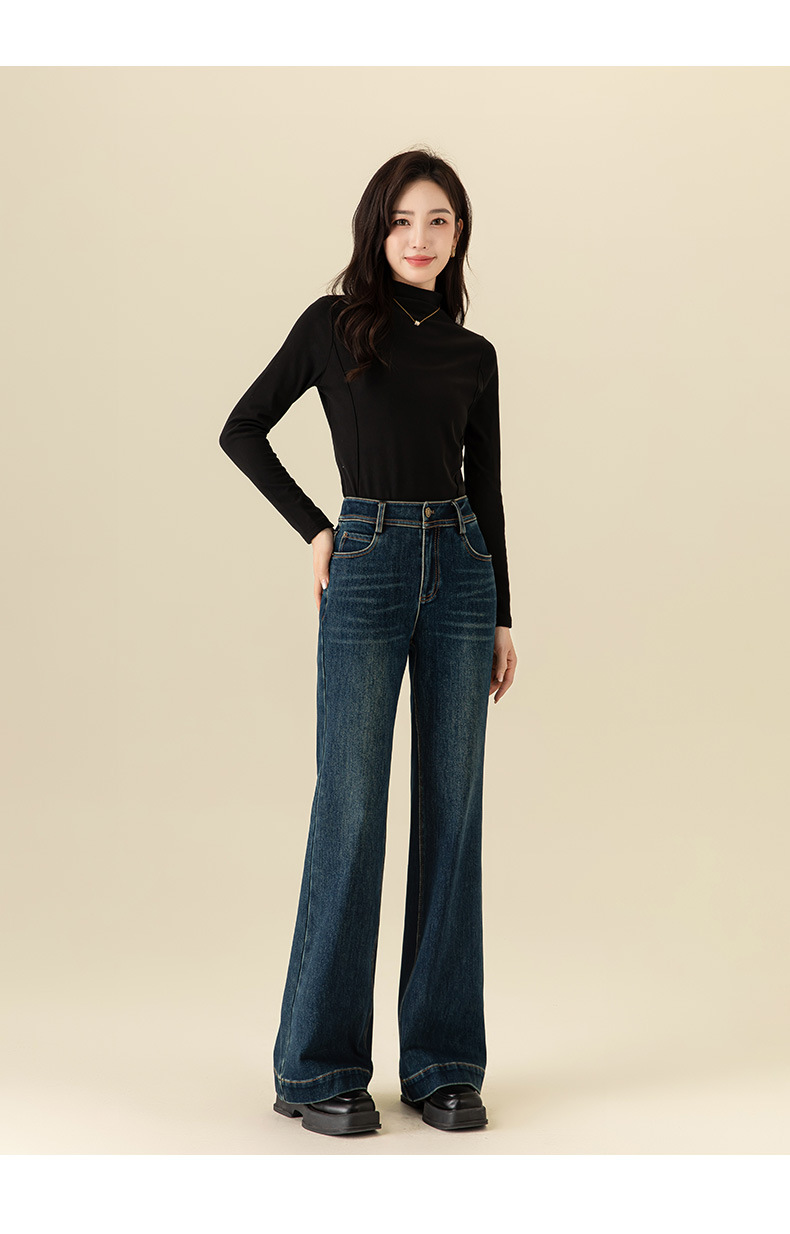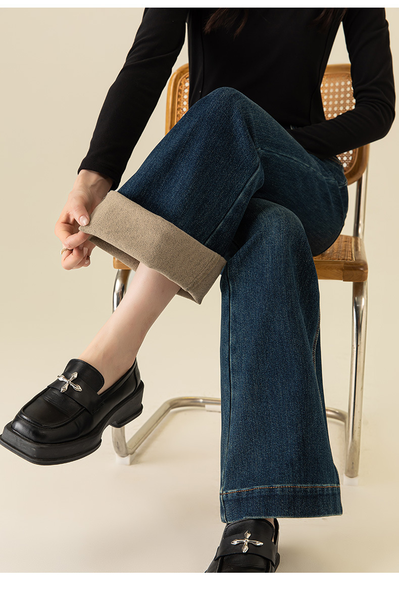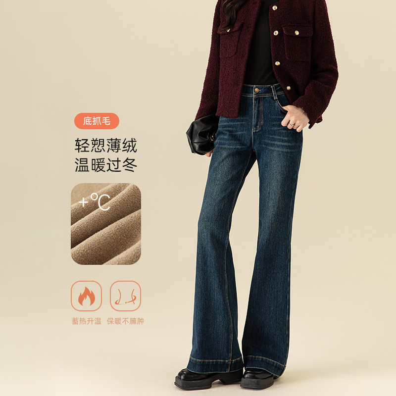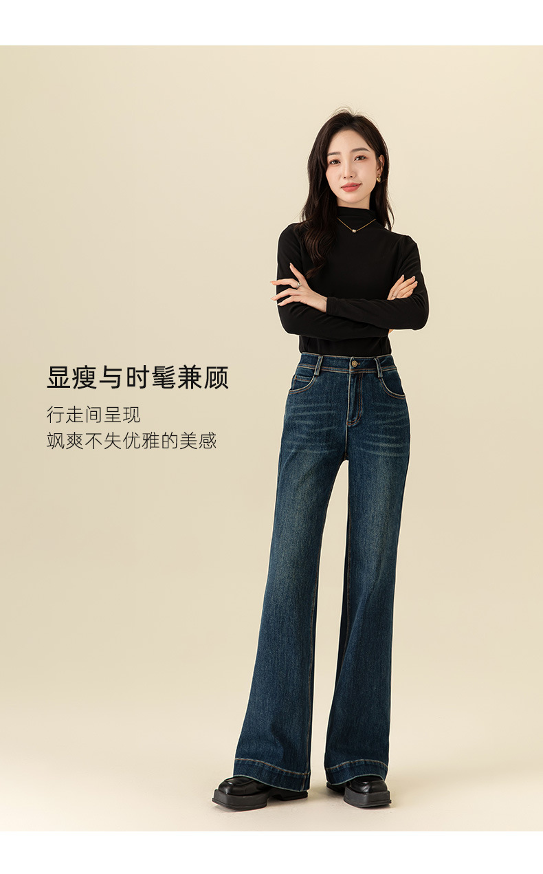 显瘦复古高腰微喇休闲阔腿裤子女2025新款秋冬加绒加厚马蹄裤