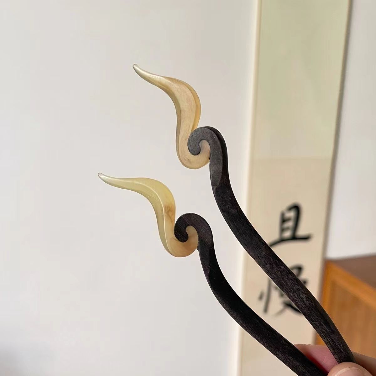 原创设计紫光檀树脂手工雕刻云纹发簪复古国风汉服簪子送女友礼物