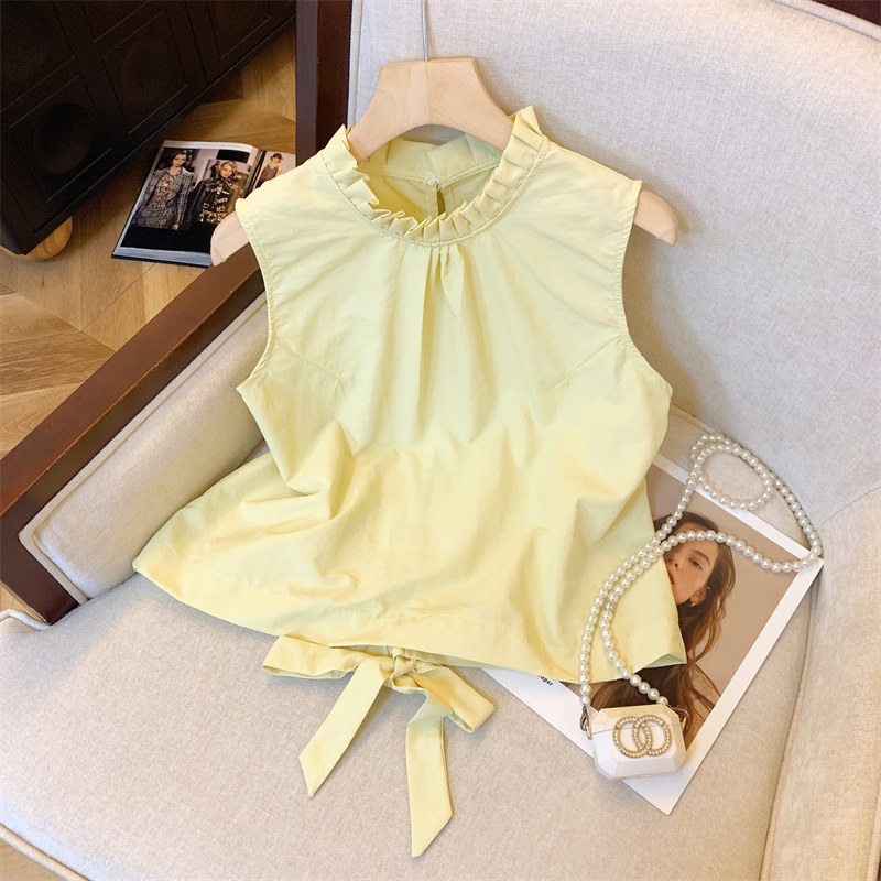 韩系木耳边无袖衬衫女夏款设计感绑带镂空露背时尚背心多巴胺上衣