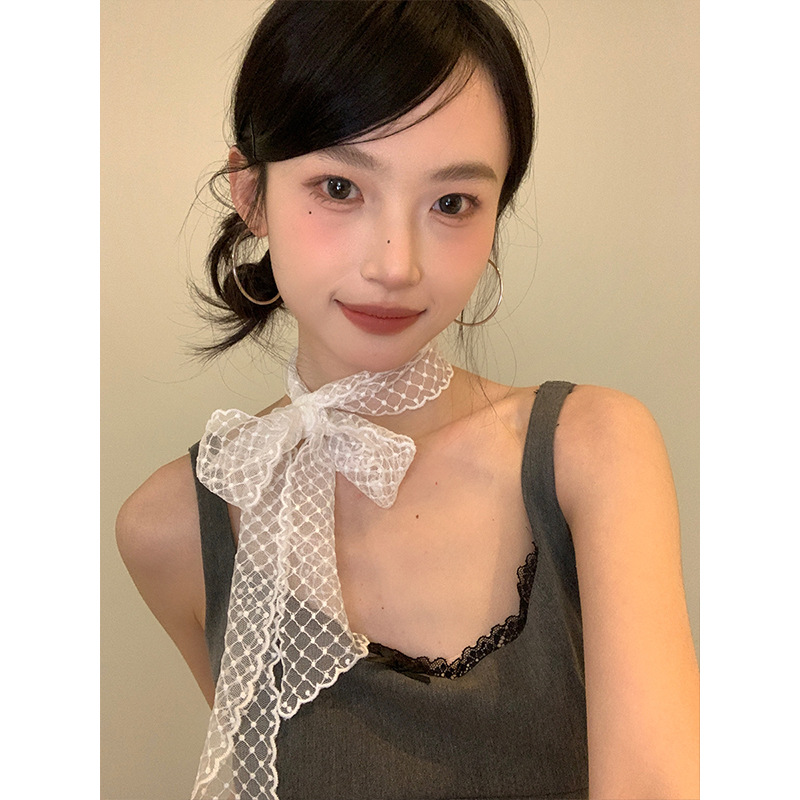 ins白色蕾丝飘带女2025年春新款高级感气质长条丝巾百搭颈饰搭配