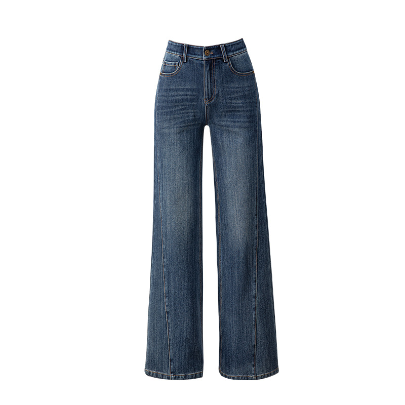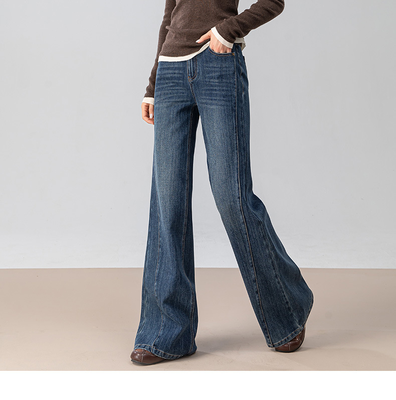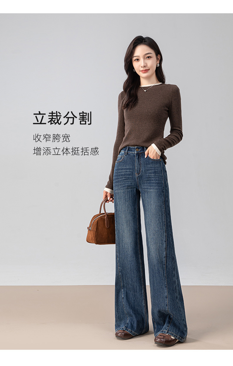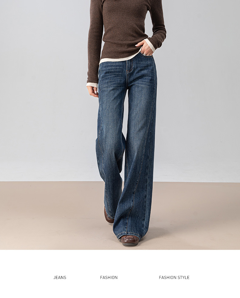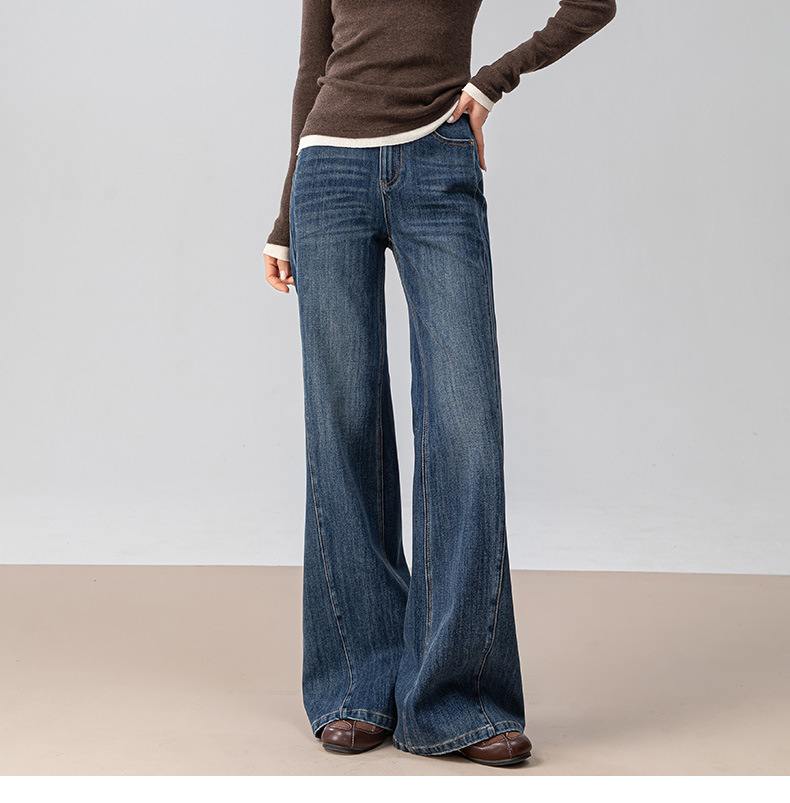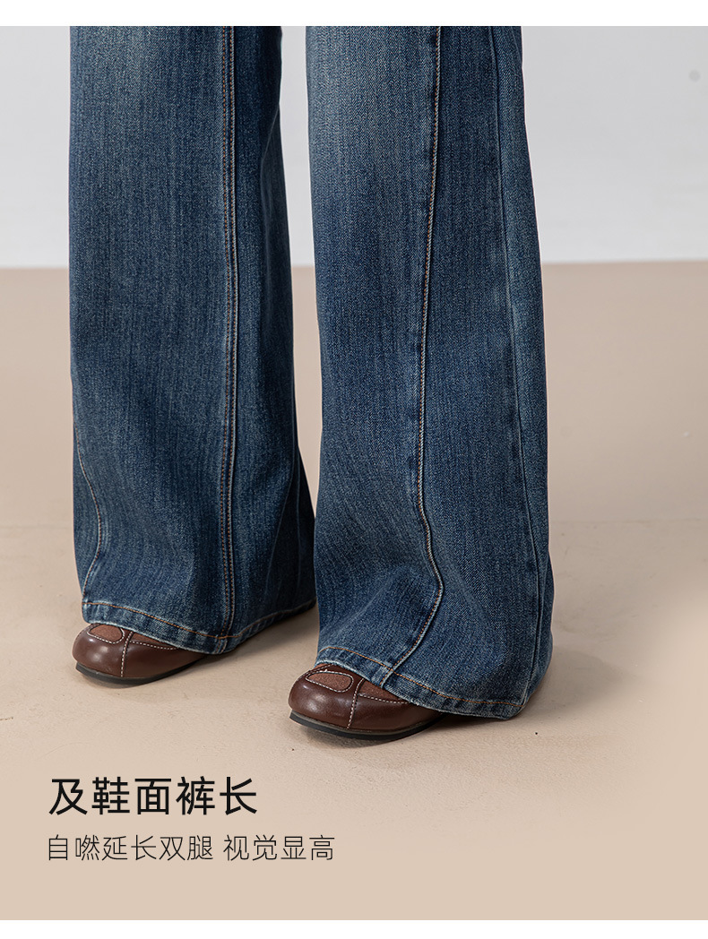 复古微喇牛仔裤女秋季新款设计感拼接显瘦直筒宽松垂感拖地裤