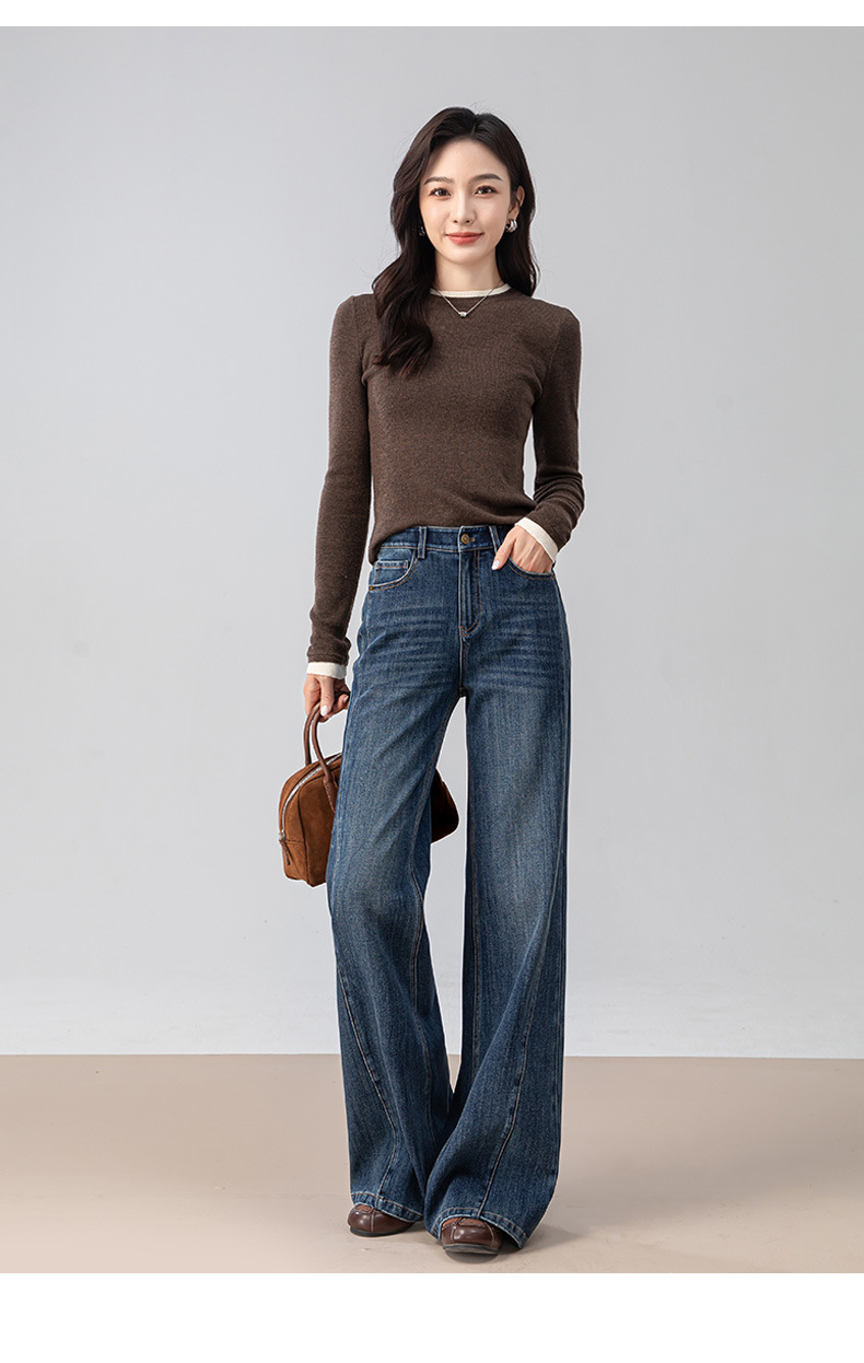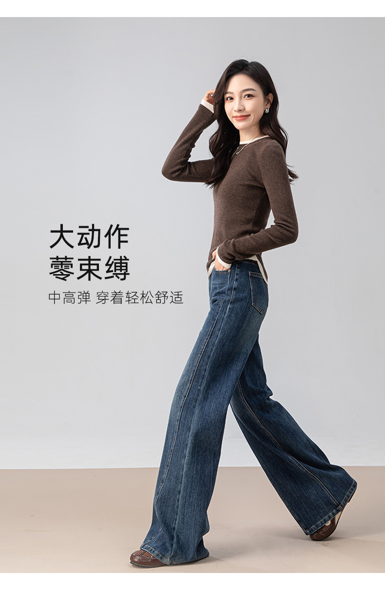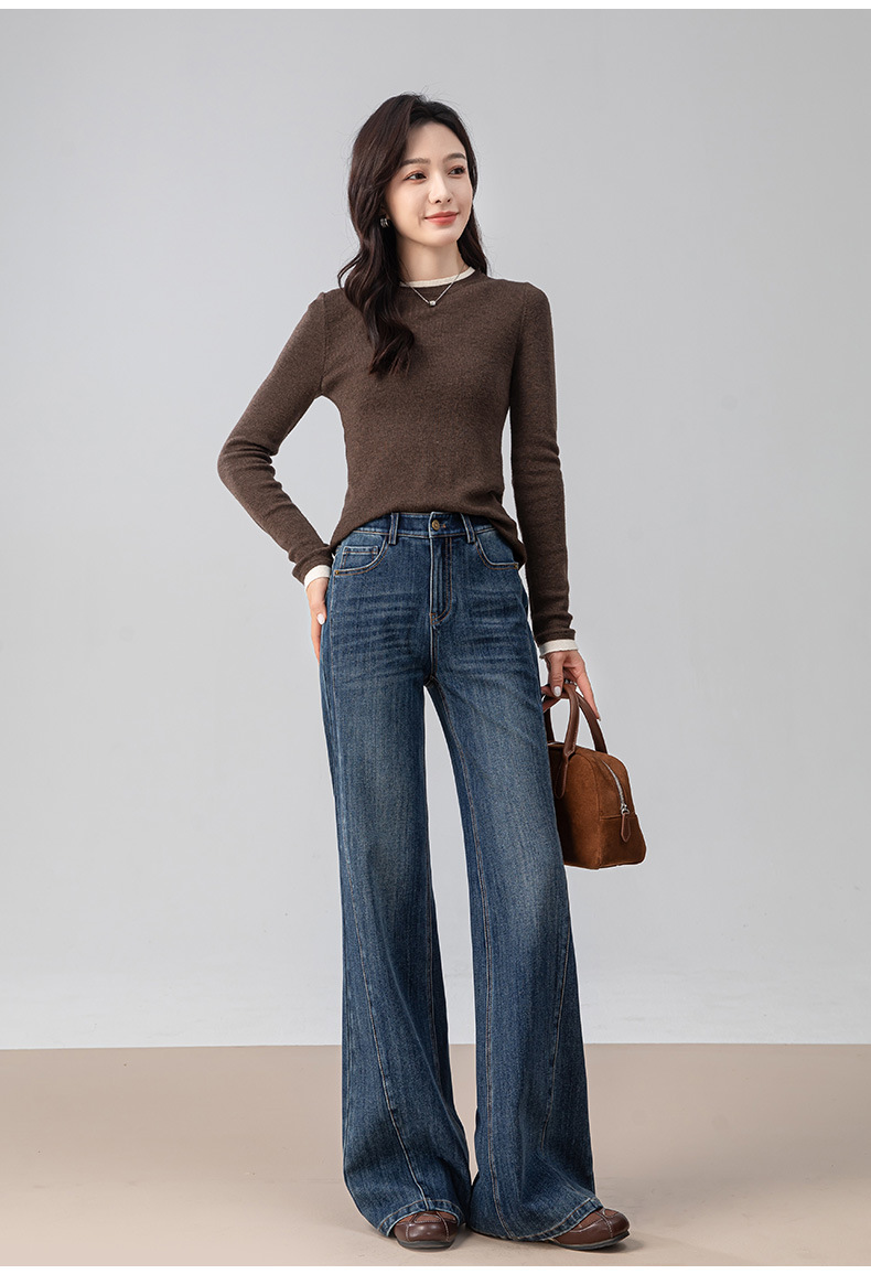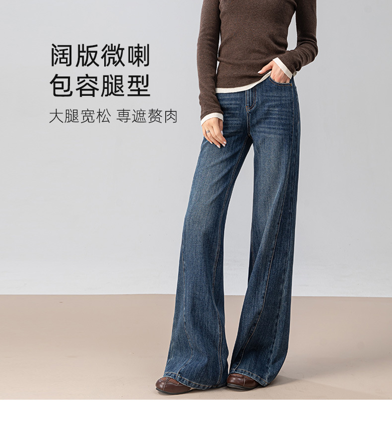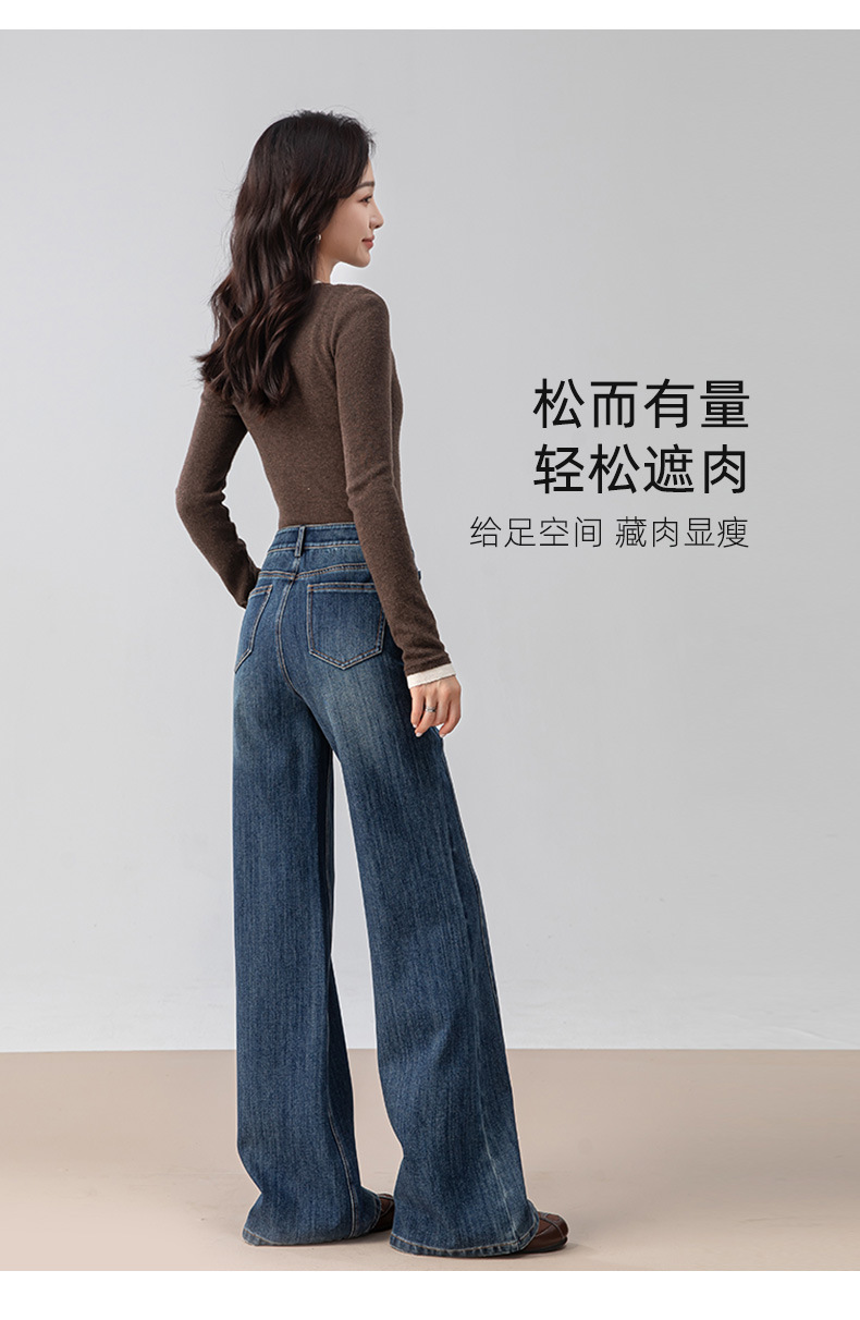 复古微喇牛仔裤女秋季新款设计感拼接显瘦直筒宽松垂感拖地裤