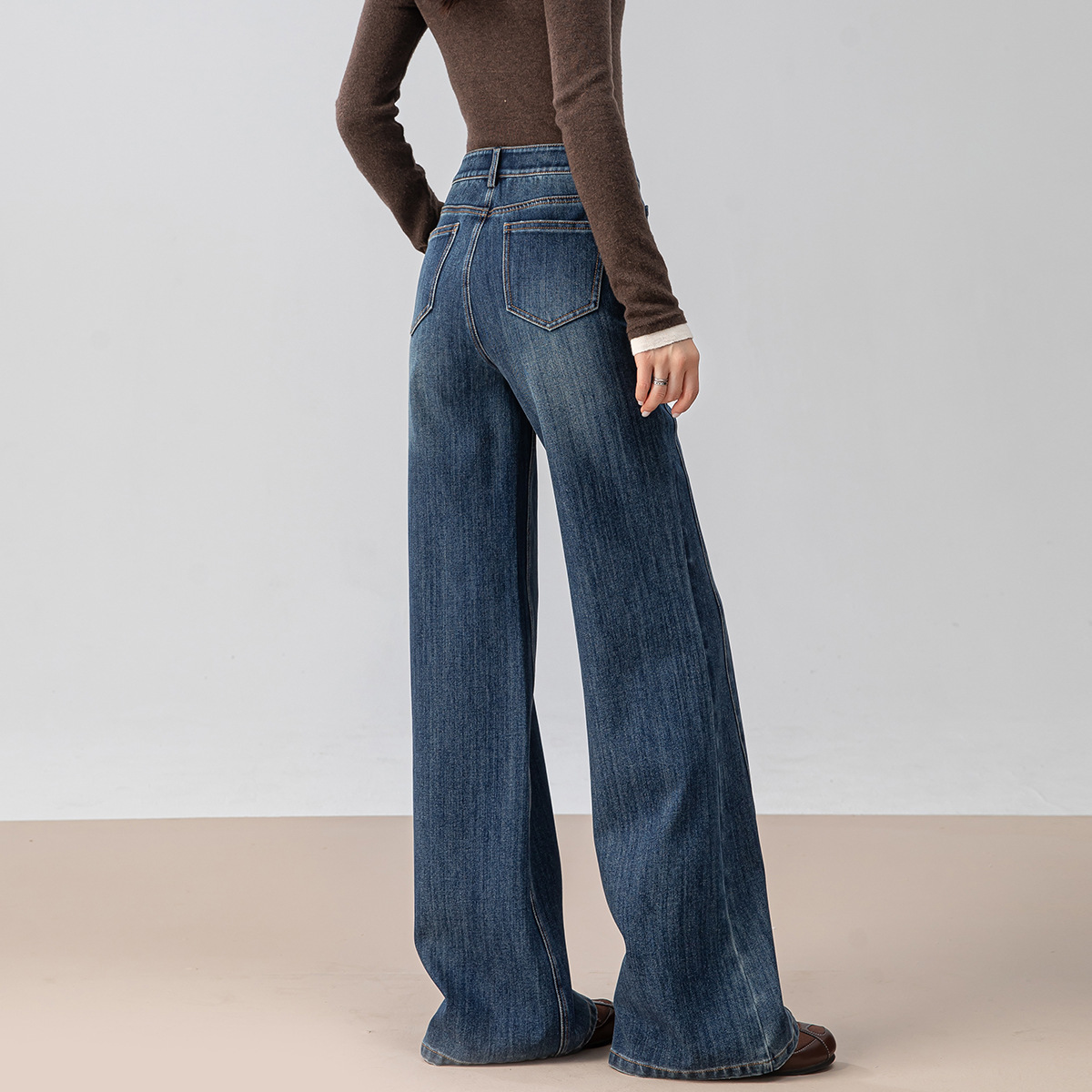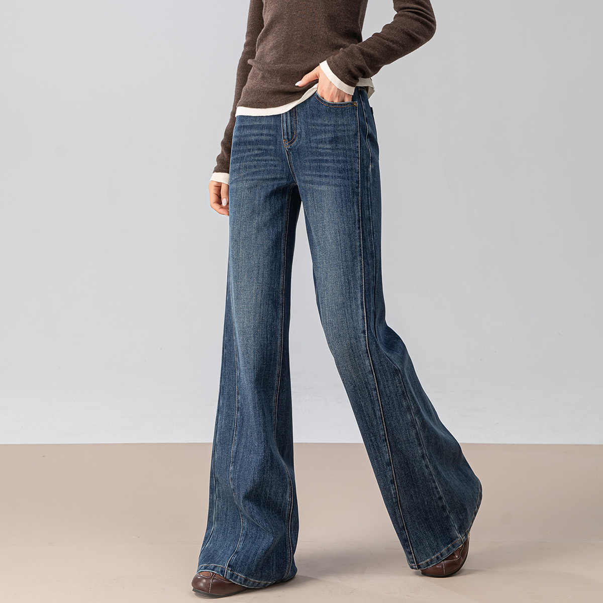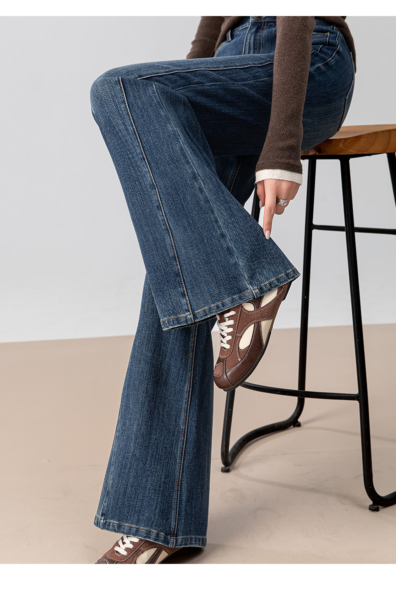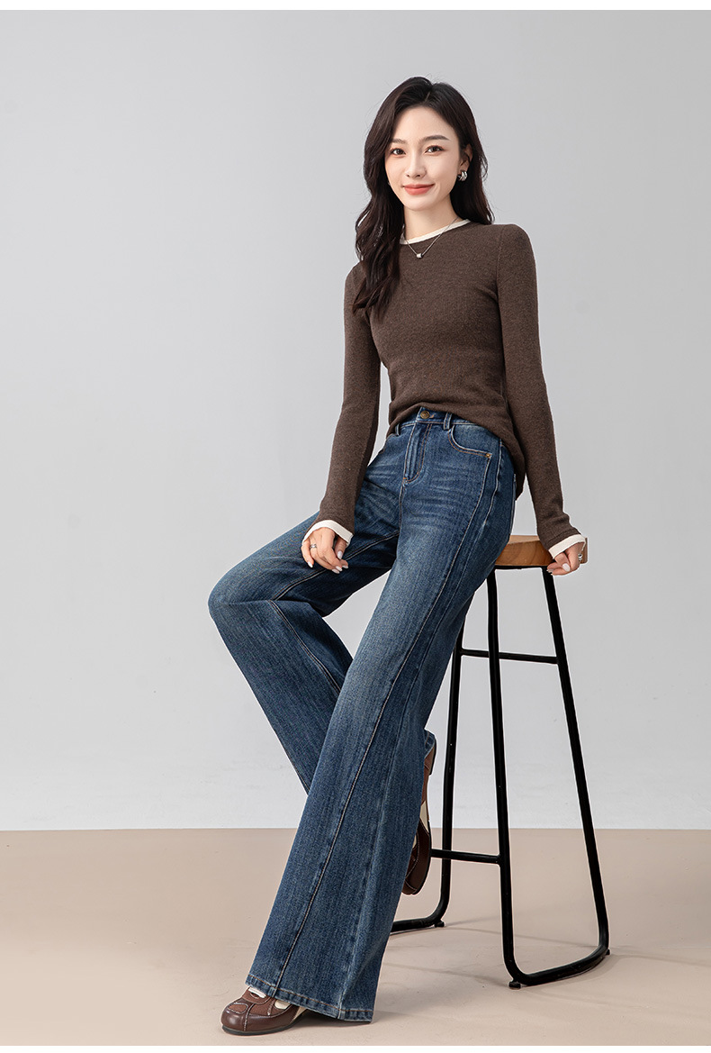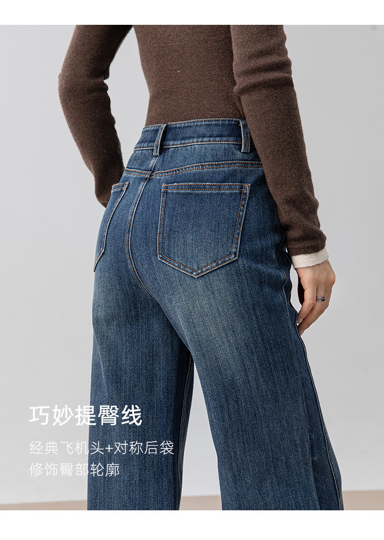 复古微喇牛仔裤女秋季新款设计感拼接显瘦直筒宽松垂感拖地裤