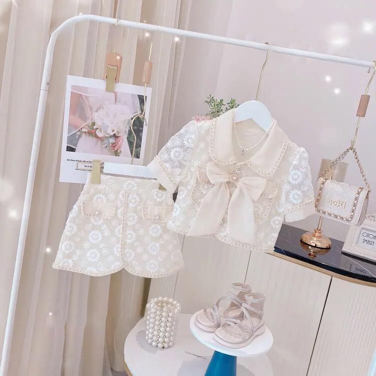 儿童刺绣洋气公主休闲套装2025夏装新款宝宝小香风短裙宝宝两件套